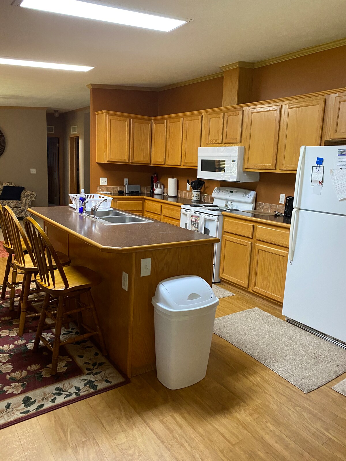 The 3,000 SF house sets where you have a nice view from deck area. Lots of deer and birds to watch! Very quiet and peaceful. Whether you like to go to lake and boat or fish, or just sit outside in the sun or shade and relax and read a book, this is the place for you! Enjoy the fire pit on the cool nights for roasting hot dogs or smores. Also two other small cabins at the same location if you would like to spend time with friends and family! large circle driveway plenty of room for boats.
