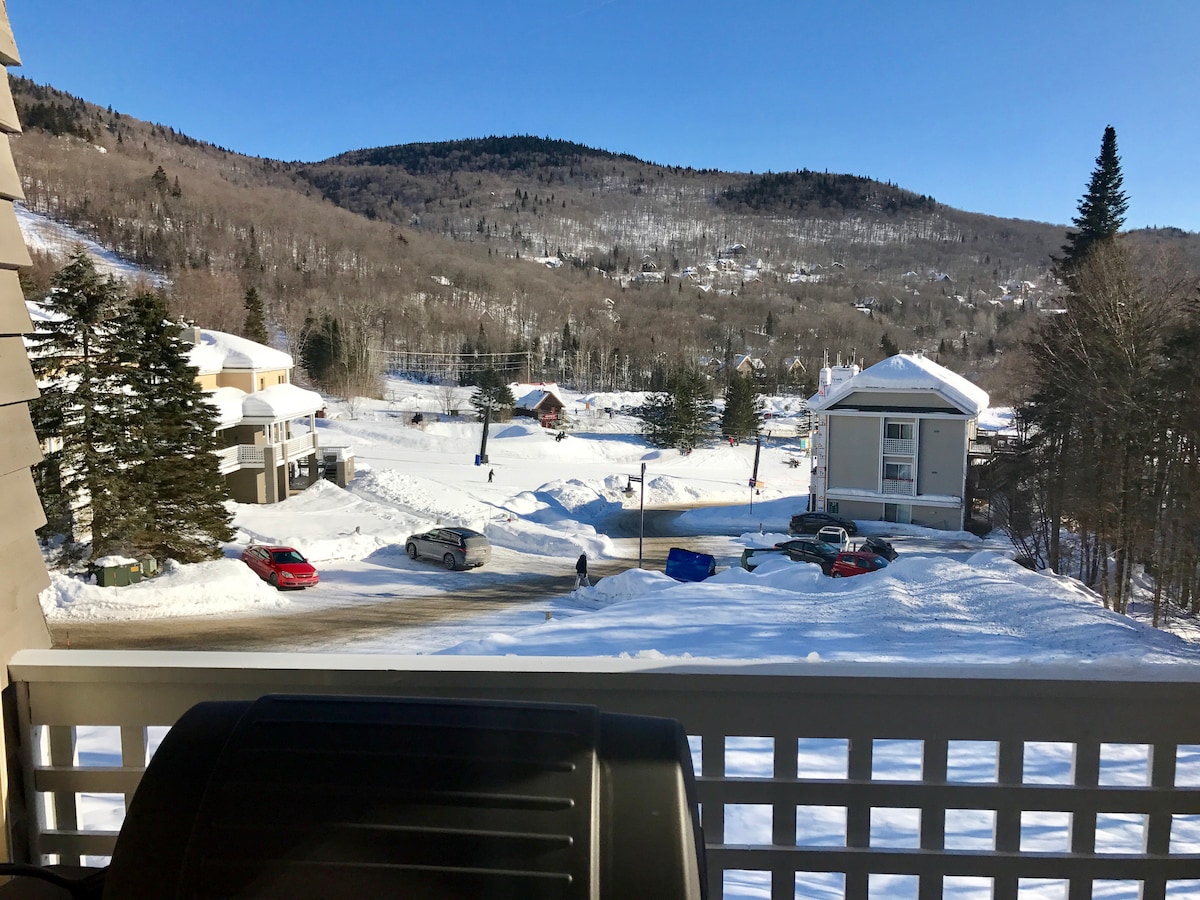 Profitez de votre séjour dans un magnifique condo avec vue sur les pentes de ski. Le condo est situé à 5 minutes à pied de la montagne de ski. Le condo inclus; 1 chambre avec lit queen, 1 chambre avec lit double, 1 divan lit, 1 salle de bain incluant une douche, laveuse et sécheuse, un poêle à bois avec bois ansi qu’une air climatisé , 2 espaces de stationnements et le Wifi rapide. Activités à proximités : Ski alpin, Golf, Vélo de montagne (Empire 47) et le Parc National de la Jacques Cartier.