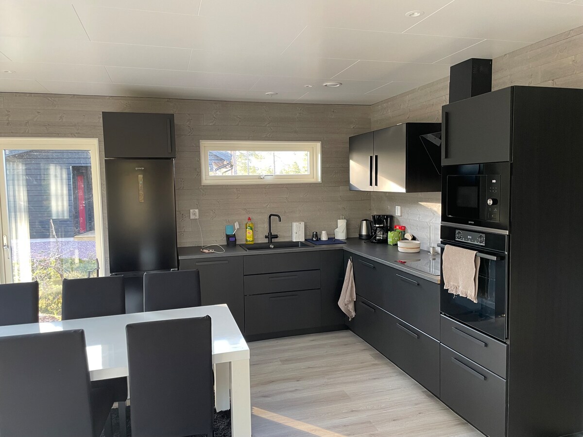 Ce logement unique a son propre style. Nordklint est une belle maison conçue par un architecte avec des choix de matériaux exclusifs. Avec une vie de mur surélevée et ouverte sur la cuisine et la salle à manger, un sentiment d'espace est créé. Les grandes fenêtres offrent une vue sur les pins et les montagnes norvégiennes. La maison dispose d'un maximum de 10 lits, mais elle est équipée pour les fêtes jusqu'à 8 personnes. De manière optimale, le logement est disponible pour 4 à 6 personnes. L'escalier raide à l'étage n'est pas adapté aux tout-petits ou aux personnes à mobilité réduite.