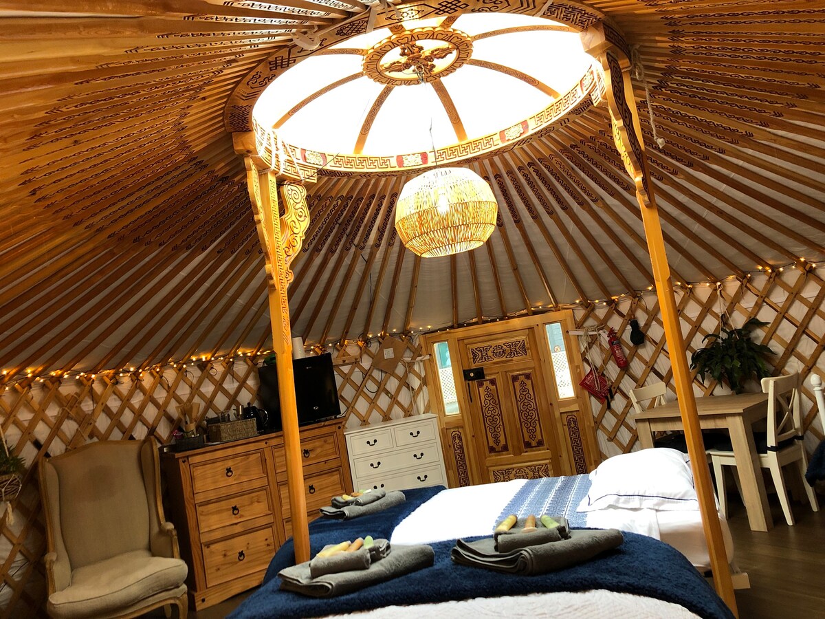 Yourte avec feu, puits de lumière, jardin, jacuzzi/sauna