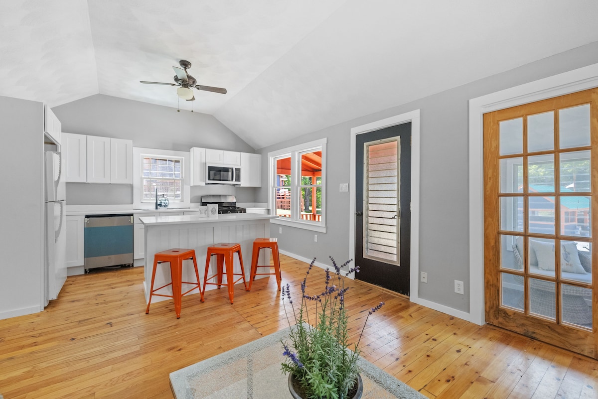 Deux chambres, deux ensembles de lits superposés et un lit double font du Cottage 7 le lieu de prédilection pour les familles ou les groupes plus nombreux. Les enfants peuvent se précipiter du porche d'entrée directement vers la salle de jeux ou la piscine pendant que les adultes préparent le dîner à quelques pas. Intérieur : cuisine complète, salon ouvert, wifi et climatisation. Une courte promenade vous amène tout ce que la baie a à offrir : Plage publique d'Alton et sentiers de randonnée situés en face.