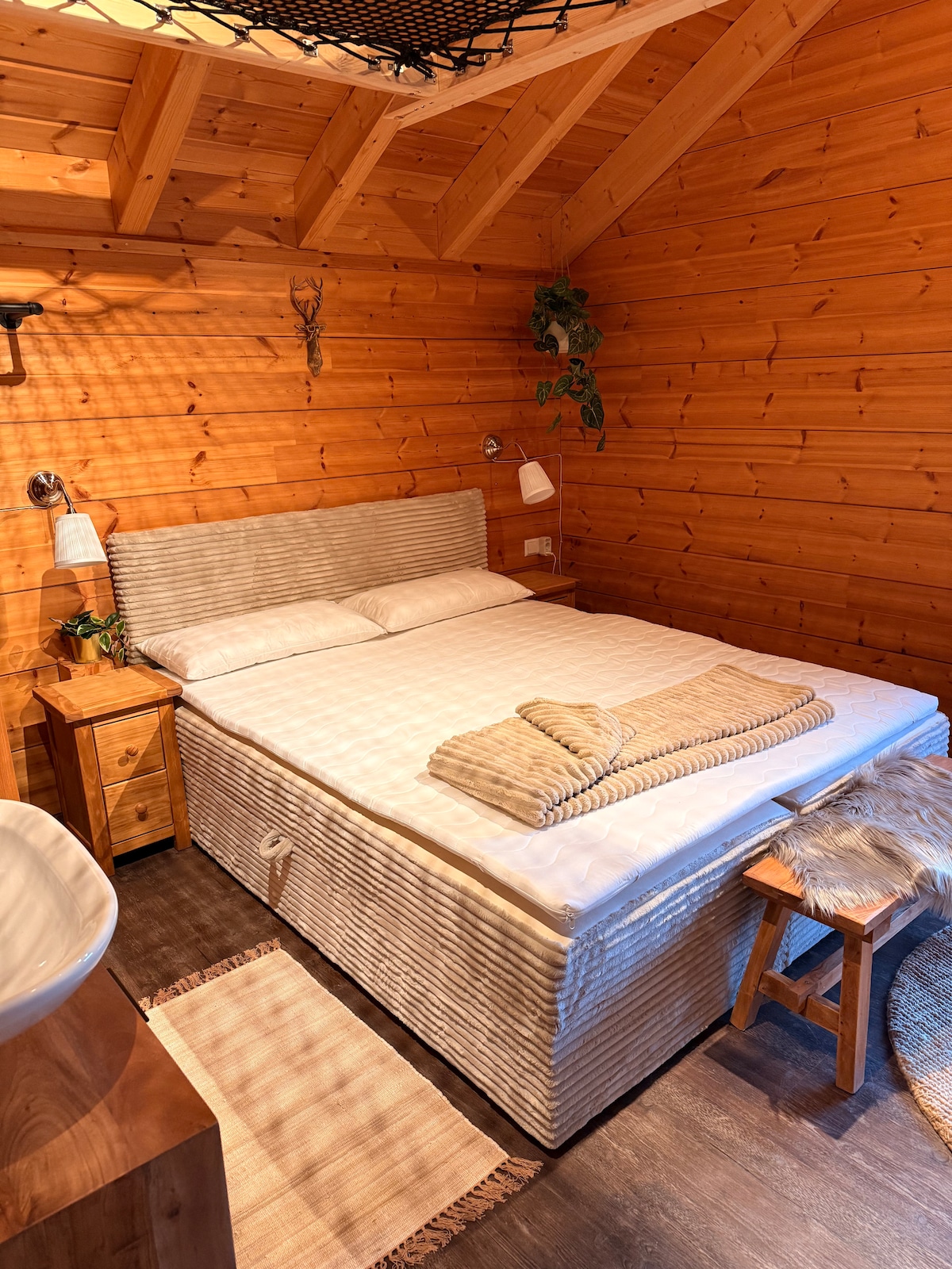 Luxueux logement intérieur en bois face à maison de 1621. Proche de Colmar et Strasbourg ,avec jardin, terrasse, garage. Construit dans matériaux naturels, l'atmosphère est relaxante . Interne , cuisine équipée, une cheminée au bioéthanol ,1 grand lit ,un coin salon Une mezzanine avec un deuxième lit en 140, une télé et un velux. Une salle de bain avec douche à l'italienne, luminothérapie. Un espace wellness avec sauna norvégien, huiles essentielles luminothérapie, douche...Enceinte Bluetooth.
