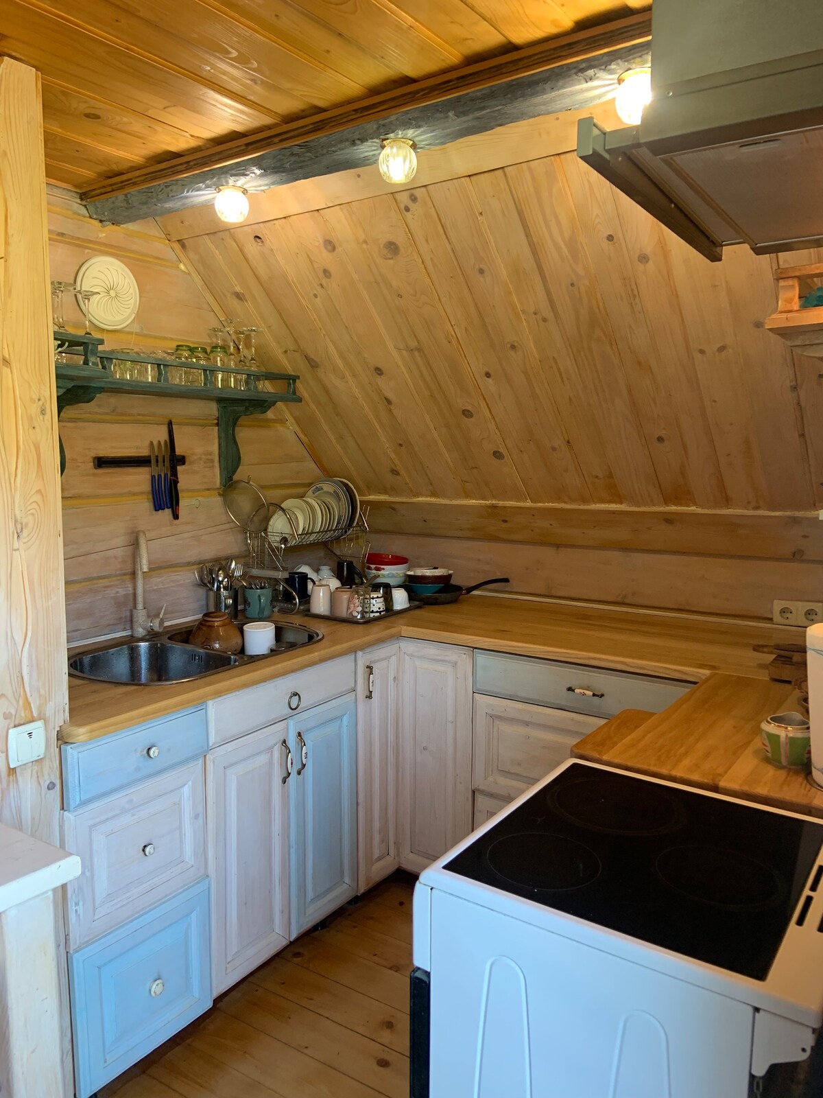 Faites une pause dans l'agitation de cet endroit unique et confortable. Plongez dans le passé et rappelez-vous la cabane de la grand-mère, mais pas sans confort, avec des lits confortables, de l'eau chaude, une cuisine équipée. Ce logement élégant est parfait pour une famille, juste des groupes de personnes. La maison a un style préservé et le confort que vous n'avez jamais rencontrés auparavant.