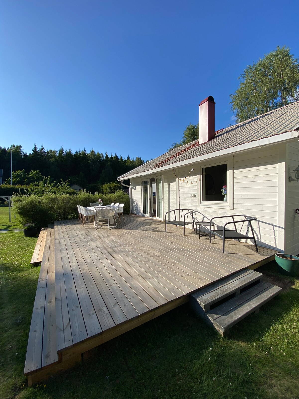 Maison de vacances entièrement rénovée, parfaite pour la famille ou un voyage avec de bons amis. La maison a une décoration élégante et beaucoup d'espace - à l'extérieur et à l'intérieur. Ici, vous pourrez profiter du silence sans accès. Courte distance en voiture de Daftö et Lagunen, qui propose un parc d'attractions, une piscine, un mini-golf, des courts de padel et des plages adaptées aux enfants. Proche du centre-ville de Strömstad avec restaurants, boutiques et ferry pour Koster. Les trésors de l'archipel tels que Saltö, Rossö et Tjärnö sont également à proximité.