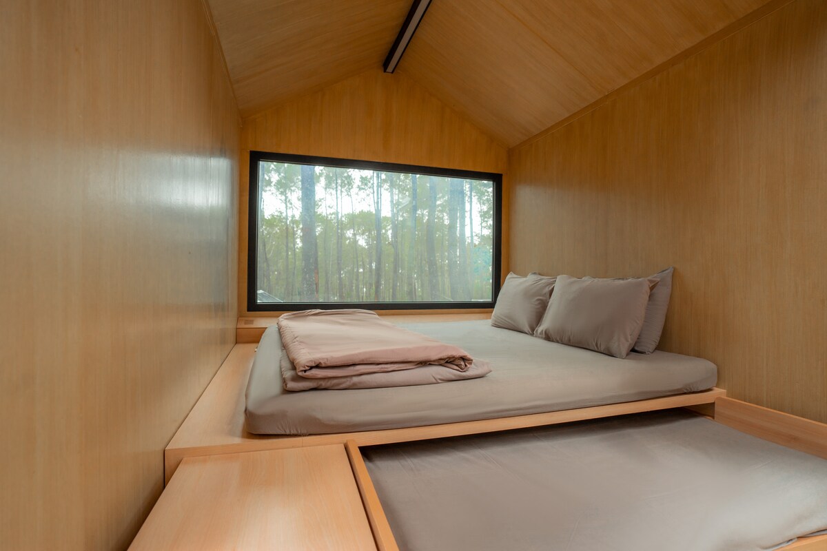 Bobocabin a un principe ferme selon lequel le camping dans la nature n'équivaut pas à une qualité de sommeil décroissante. Au lieu de cela, à travers ce type de cabane de luxe, vous profiterez de la meilleure expérience relaxante au milieu de la beauté exquise de la nature indonésienne. Le grand lit king size ainsi que la salle de bain privée équipée dans cette cabane offrent exactement le confort et la sécurité supplémentaires dont vous avez besoin. Alors, qu'attendez-vous ? Réservez votre place maintenant !
