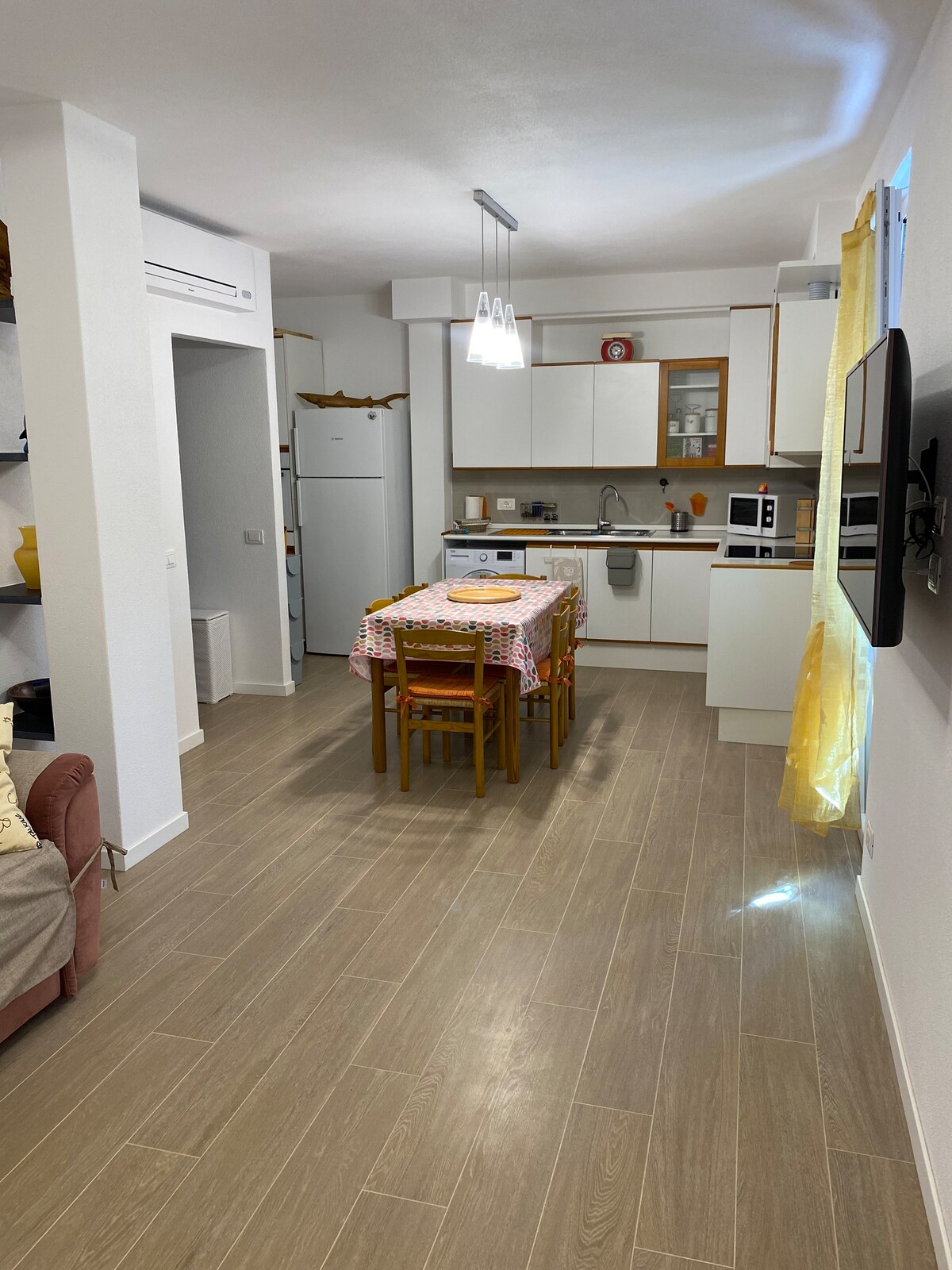 Joli appartement de style marin, au deuxième étage (sans ascenseur) avec parking privé, à quelques minutes à pied du centre historique et du front de mer de Chiavari. Un grand salon - Wi-Fi gratuit, télévision intelligente et Netflix - cuisine complète avec appareils électroménagers, coin petit déjeuner avec machine à café - également à l'américaine - bouilloire, grille-pain et micro-ondes. Une chambre double, une salle de bain complète avec sanitaires et douche. Draps et serviettes de bains inclus.