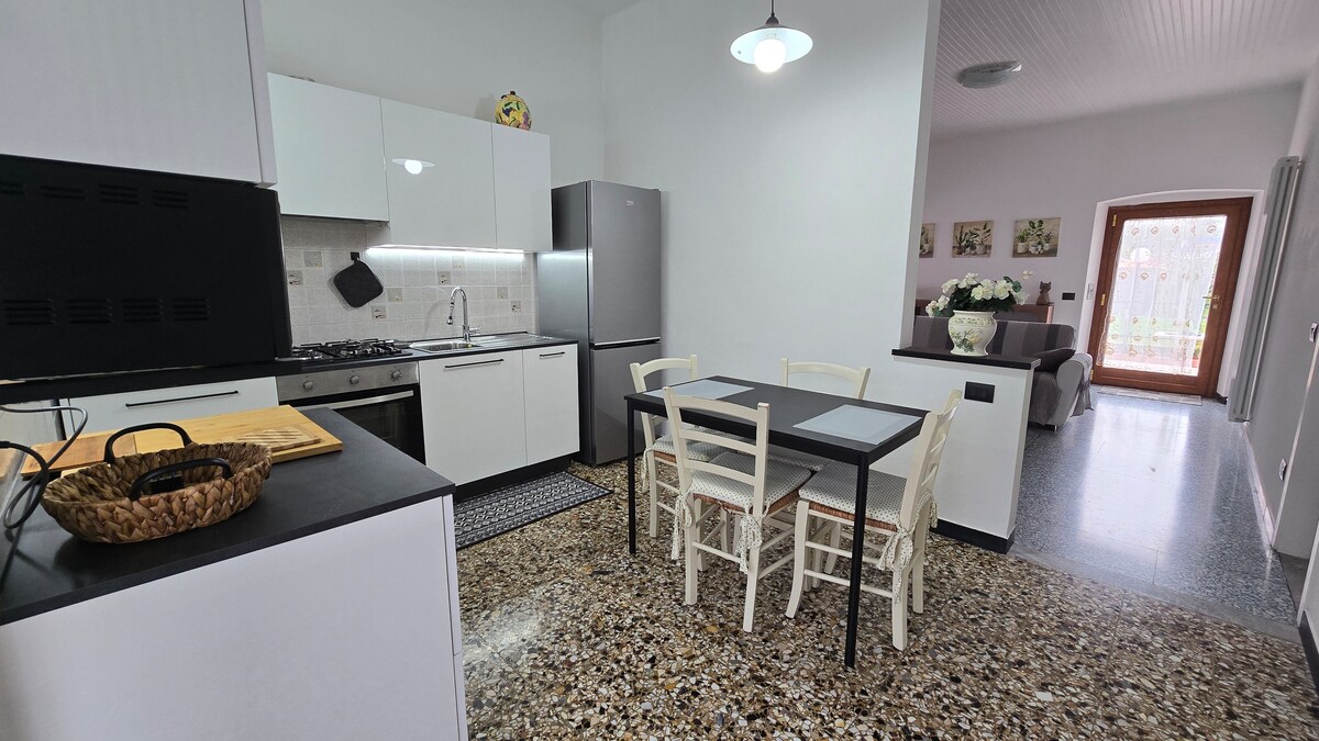 Villa romantique à seulement 3 km de la mer et du centre de Chiavari, à usage exclusif, avec deux places de parking, jardin, grande terrasse équipée d'un évier extérieur, table, chaises, parasol et barbecue. L’intérieur se compose d’un grand salon et d’une cuisine ouverte (équipée d’une plaque à induction, d’un four et d’un lave-linge), de deux chambres et d’une salle de bains. Wi-Fi gratuit dans toute la propriété. Maison climatisée et sans barrières architecturales. La porte, qui délimite la propriété, est automatique.