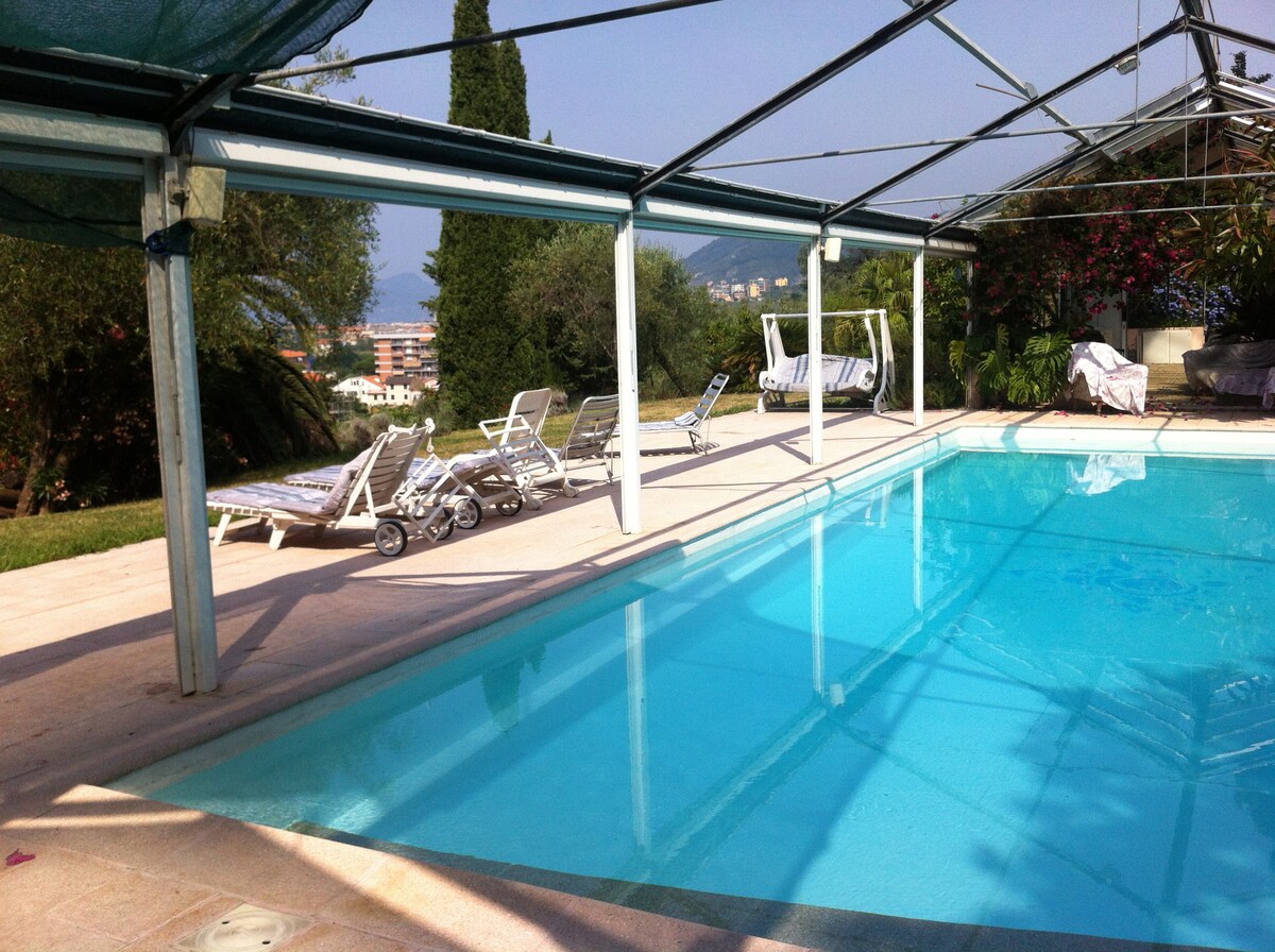 Villa entourée de verdure et d'oliviers typiques de la Ligurie. À l’intérieur du petit parc se trouve une délicieuse pergola avec une grande cuisine très spacieuse et équipée d’une agréable cheminée. La maison est sur deux étages avec 3 chambres, 3 salles de bains et un grand salon avec coin cuisine. On peut y accéder par 2 entrées avec 3 places de parking. Couverture WIFI. Climatisation sur 2 étages. Mer accessible à pied en 5 minutes. La taxe de séjour est de 2,50 € par personne de plus de 15 ans.