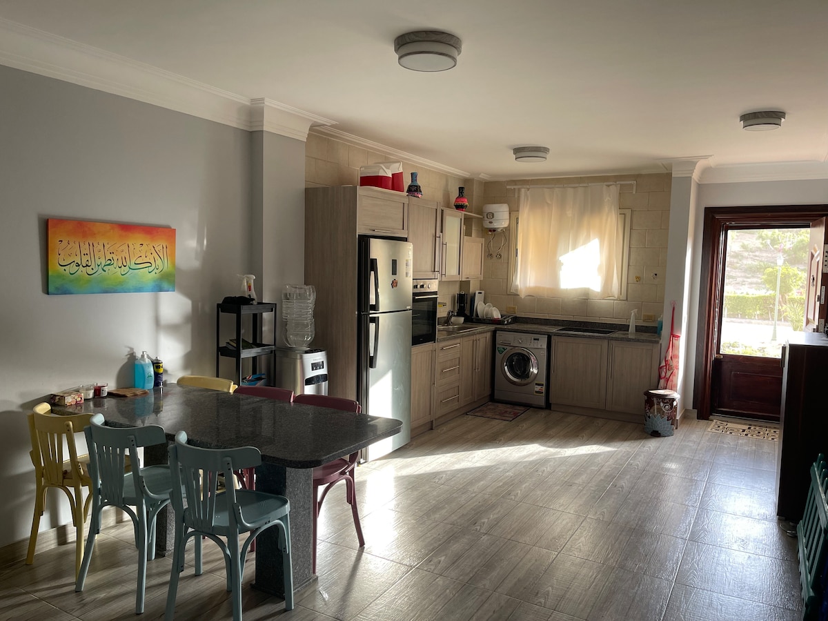 Oubliez vos soucis dans cet espace spacieux et serein. Détendez-vous dans une villa privée spacieuse à quelques pas de la plus grande plage de Ras Sudr. Avec 3 chambres climatisées, une grande piscine privée et un jardin de 600 m2, elle est parfaite pour les familles ou les amis. Profitez d'un cadre paisible, d'eau fraîche du gouvernement (pas de réservoirs), d'une cuisine entièrement équipée avec une machine à glaçons et d'un service 24h/24 et 7j/7 dans un quartier sécurisé et élégant. Confort, intimité et plaisir : votre escapade idéale vous attend.
