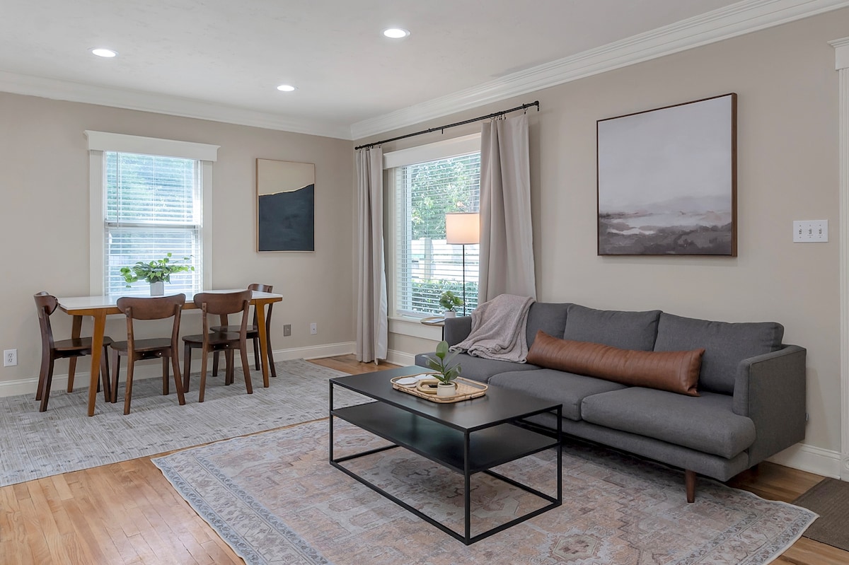 Ce joyau confortable est un appartement privé spacieux d'une chambre de 800 pieds carrés avec petit-déjeuner continental et une cuisine complète ! D'innombrables restaurants, pubs, épiceries à quelques pas. Les caractéristiques comprennent de nouveaux meubles, appareils électroménagers, lave-linge/sèche-linge, foyer électrique, lit confortable, linge de maison amélioré et autres petites attentions. :-) Téléviseur 55 pouces avec Netflix gratuit, applications Roku et bien sûr Wi-Fi haut débit. Points forts de la zone centrale décrits ci-dessous.