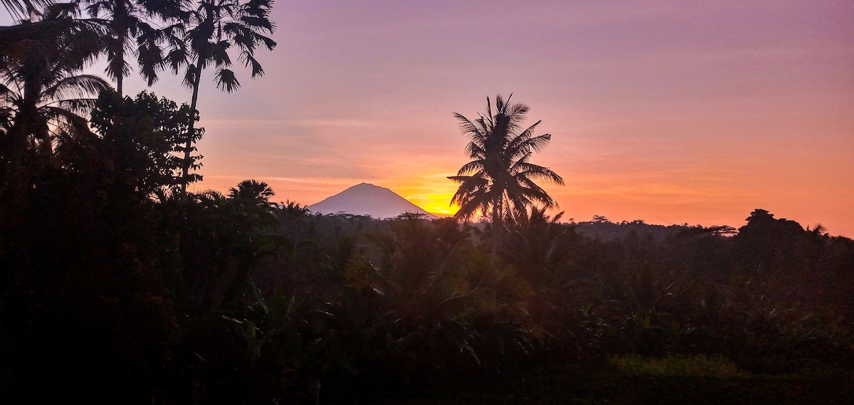 Lieu où le silence parle…faites l'expérience d'être un avec la nature, mais dans un espace confortable et douillet…énergie de guérison de l'arbre bunut, vue imprenable sur les volcans surplombant la forêt tropicale, bruit de l'eau courante de la rivière de la jungle, accès aux sources naturelles…parfait pour se connecter avec soi-même, se ressourcer et guérir. Retraite spirituelle.