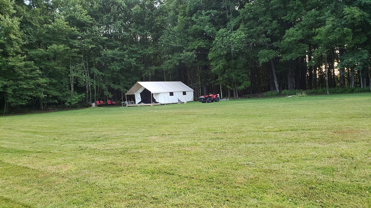 Nous sommes ouverts ! Visitez majesticfarm .com et insta majesticfarmheritage pour vous faire une idée du terrain. Vous pouvez également acheter du bois, des viandes, etc. Magnifique site surplombe le verger. Il y a d'énormes rochers sur lesquels s'asseoir et grimper. Il y a un lit double dans la maison, apportez de la literie. Il y a une table de pique-nique et un foyer de camp. Il y a une cuisine et une cabane communes. Avis D'AUTOMNE/HIVER - les éléments aquatiques sont généralement éteints de novembre à mars. Il n'y a pas de chauffage ou d'électricité dans la maison.