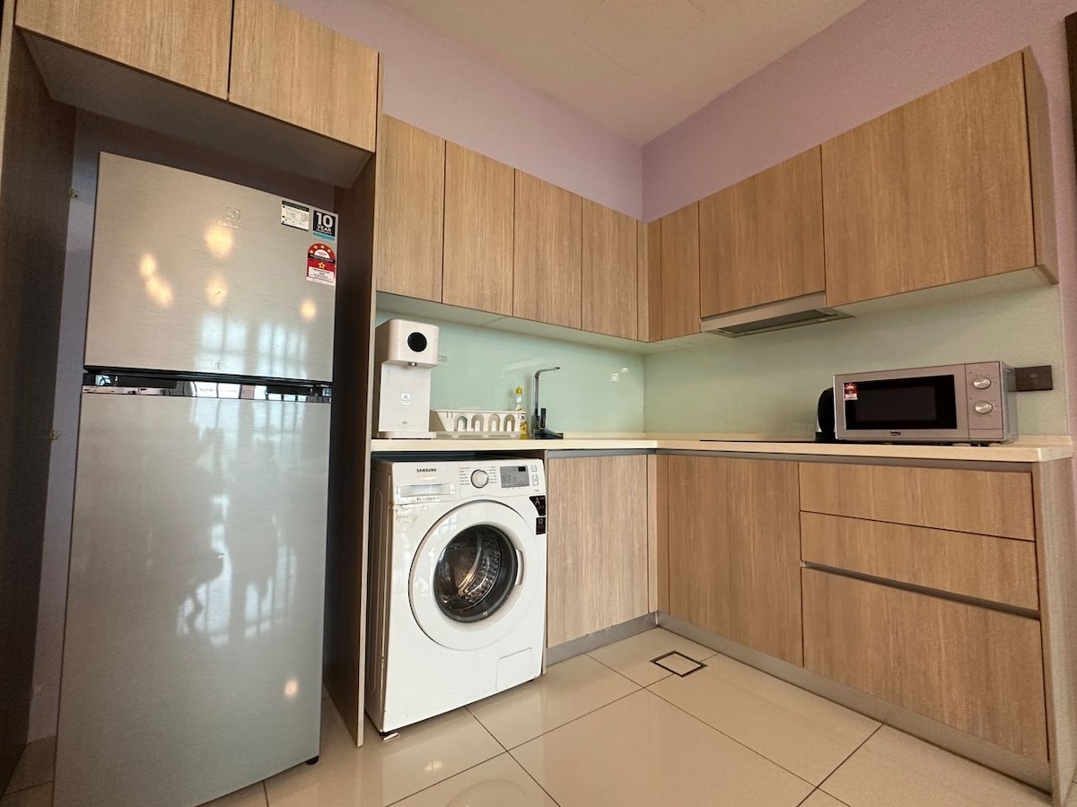 Bienvenue dans notre confortable et spacieux 3 chambres 2 salles de bains pour 6 personnes !! ❤️ Notre emplacement est au cœur de la ville de Johor Bahru, à seulement 10 min à pied du pont couvert CIQ, de JB sentral, de City Square et de Komtar. 🚶🏻Il est très approprié pour les réunions de famille, les groupes d'amis, les voyageurs d'affaires ou les touristes. 🌹 Notre unité fait face à un jardin tranquille depuis le grand balcon. Le centre commercial R&F est juste en face, accessible à pied, avec Jaya Grocer, une laverie, un 7-11, des restaurants et des magasins de proximité, tous au rez-de-chaussée. 🌻Venez en profiter ^^