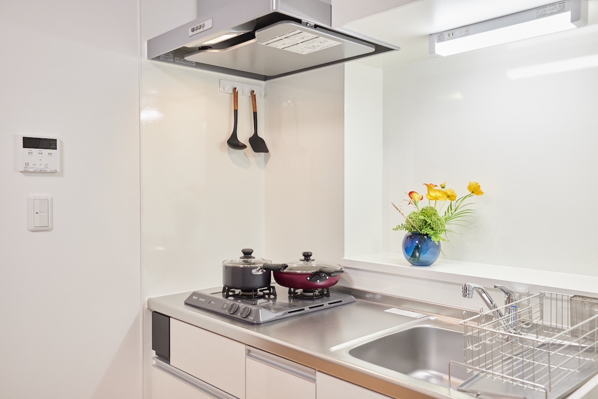 Merci d'avoir vu la chambre 201 de GIVE Shibuya Honmachi. Il s'agit d'une chambre nouvellement construite terminée en juillet 2021. + Capacité illimitée ! Internet haut débit ! [Excellent accès У +10 min à pied ou 3 min en taxi de la gare 5-chome de Nishi-Shinjuku (sortie A2) sur la ligne Toei Oedo ! +14 minutes à pied de la gare de Hatsudai sur la ligne Keio. +Des ustensiles de cuisine et des appareils électroménagers sont disponibles. +Les lits sont faits au Japon avec des matelas français, qui sont utilisés dans de nombreux hôtels célèbres !