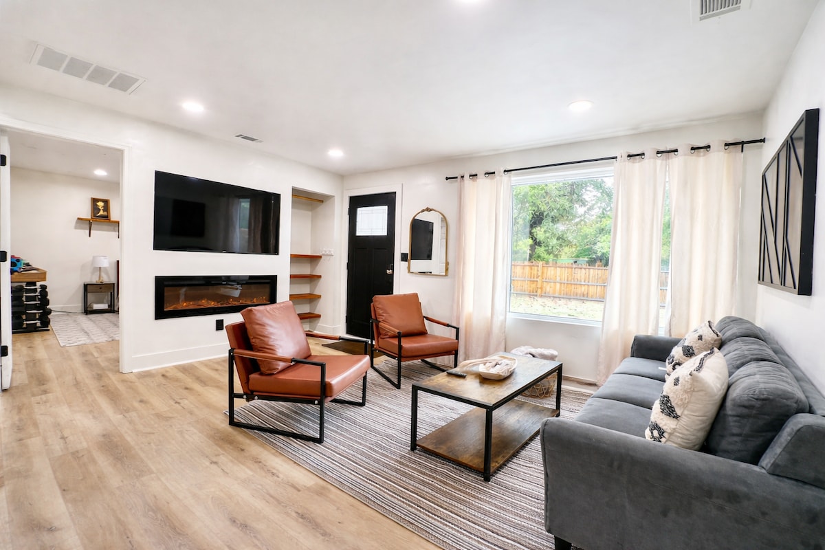 Cette charmante maison en briques de 3 chambres et 2 salles de bain dispose d'une cuisine rénovée avec des comptoirs en granit et des appareils en acier inoxydable. Le grand espace arrière est entièrement clôturé, avec une grande terrasse, un barbecue au charbon de bois et un foyer. La chambre principale spacieuse dispose d'une salle de bains privée et d'un grand dressing. La chambre principale et le séjour disposent tous deux de téléviseurs connectés. Connectez-vous à vos propres comptes de streaming ou profitez du compte Hulu gratuit. Le plan d'étage divisé permet une séparation facile des voyageurs.