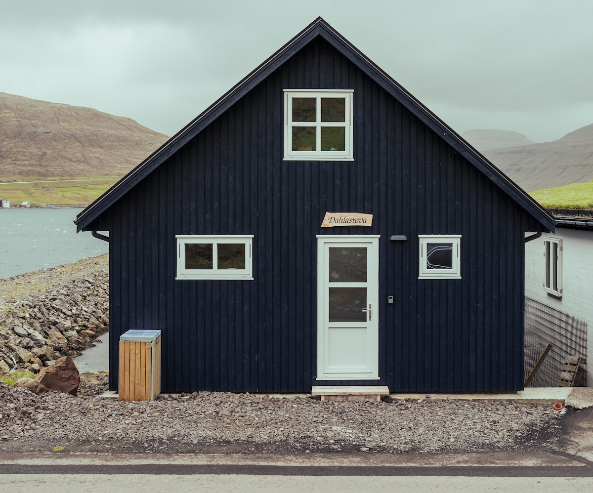 Cabane moderne, récemment construite, avec vue imprenable sur la mer. Design scandinave avec de hauts plafonds, de grandes fenêtres, des touches de bois, une cuisine complète et une terrasse privée. Idéal pour les familles, les couples, les voyageurs en solo ou le travail à distance. Situé au centre des îles Féroé, à proximité de randonnées pittoresques, de villages locaux et d'attractions incontournables. Paisible, élégant et parfait pour des séjours courte durée ou des escapades plus longues. Emplacement idéal pour le vélo, la pêche, la course à pied et la navigation de plaisance, etc. (Prêt à louer à partir du 20 août)
