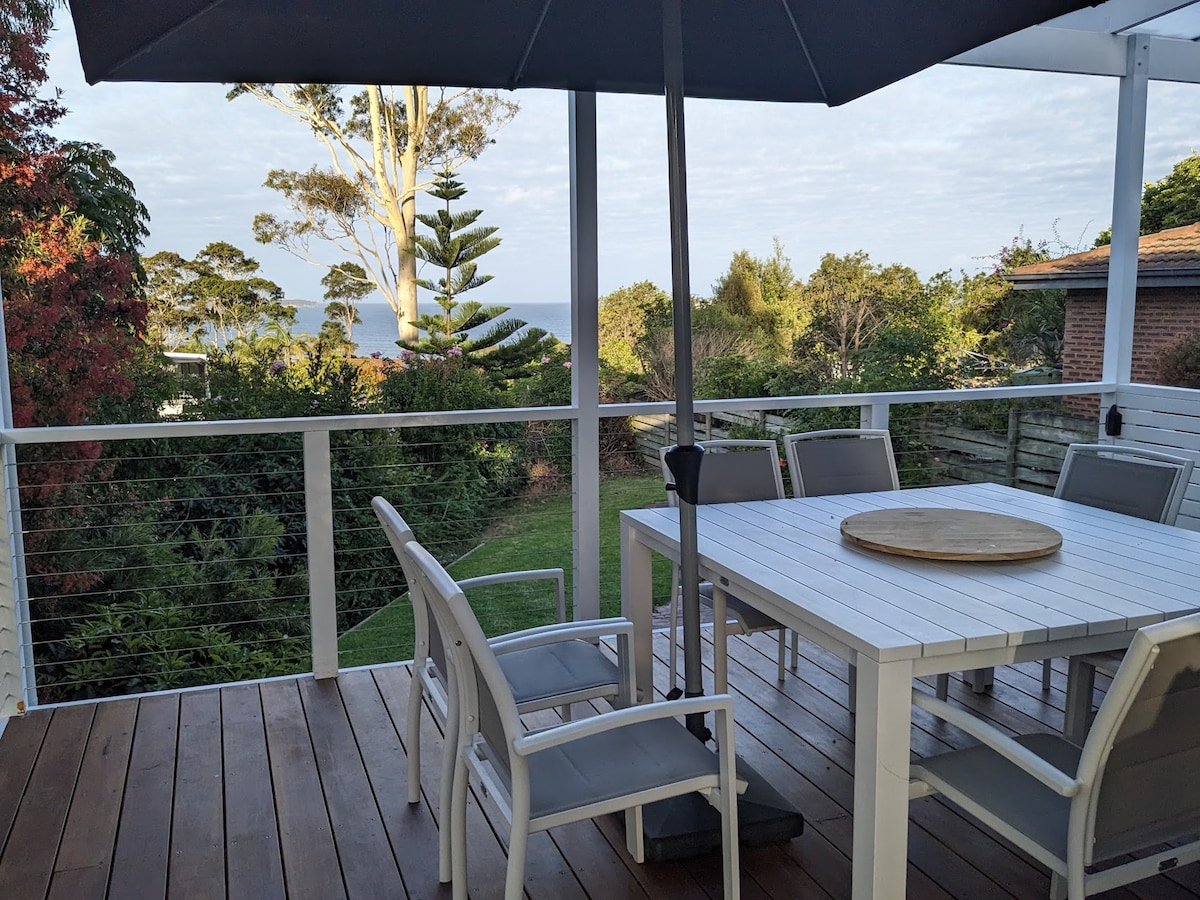 L'un des meilleurs emplacements de Malua Bay avec une vue imprenable sur l'océan. Profitez d'un séjour magnifique dans un confort et un style spacieux pouvant accueillir jusqu'à 8 personnes. Emplacement fabuleux toute l'année, à 1-2 minutes à pied de la baie de Garden, à 5 minutes à pied du populaire café Three66 et profitez de tout ce que la côte sud a à offrir. Observez les baleines depuis la terrasse avant alors qu'elles migrent vers le nord pendant les mois les plus frais et vers le sud avec leurs baleineaux lorsqu'il commence à faire chaud vers l'été.