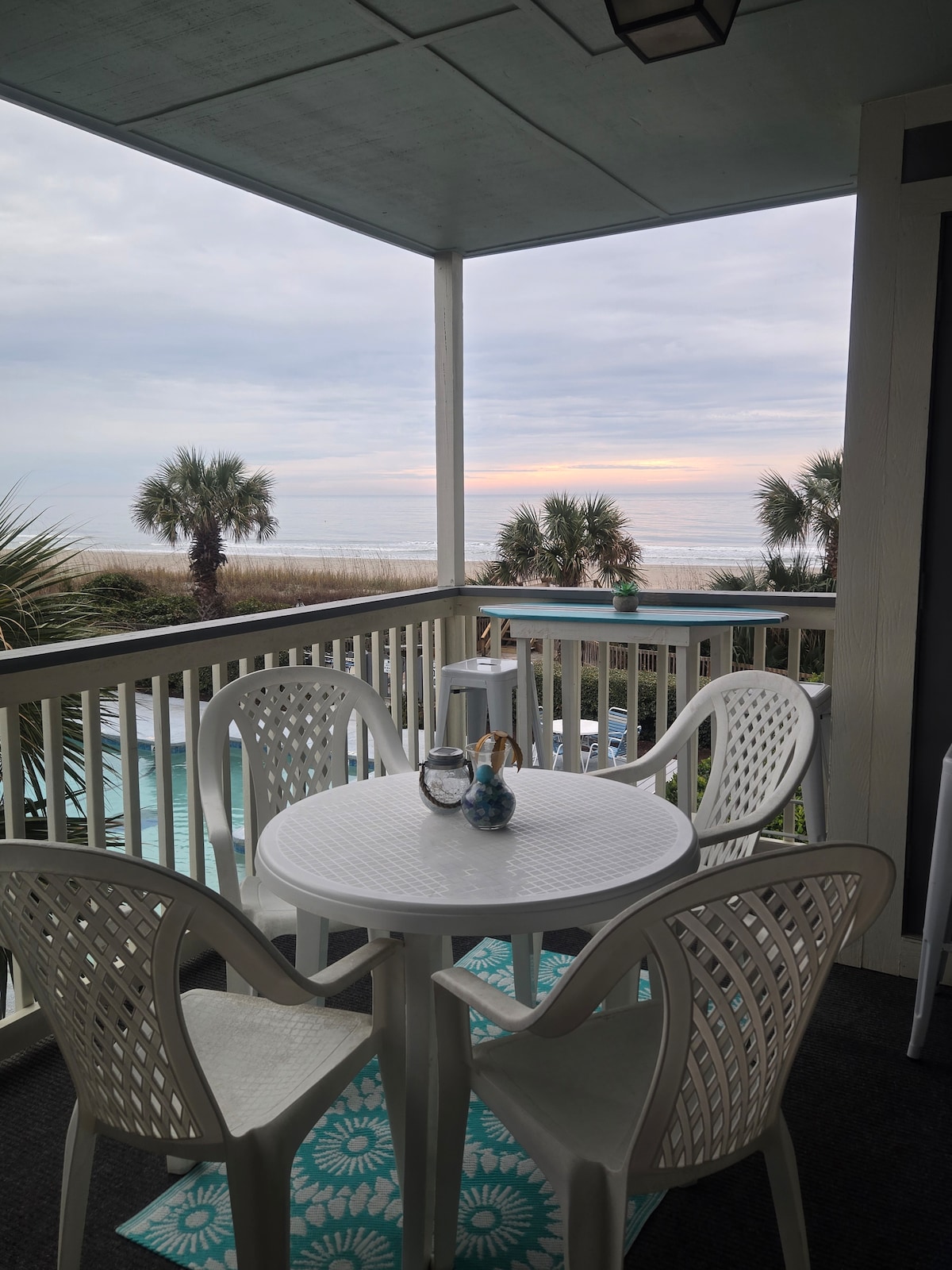 Bel espace moderne récemment rénové directement sur la plage. Magnifique vue sur l'océan depuis le salon et la chambre principale. À 1/4 de mile de Garden City Pier, à distance de marche des bars, restaurants, pêche, surf, arcade. Pas besoin de chaussures ! Marchez directement sur la plage ! Les voyageurs matures et respectueux sont invités à profiter de notre espace. Absolument aucun animal de compagnie autorisé ou fêtes car il y a beaucoup de personnes âgées dans l'immeuble et les animaux de compagnie des voyageurs ne sont pas autorisés en vertu de l'HOA.