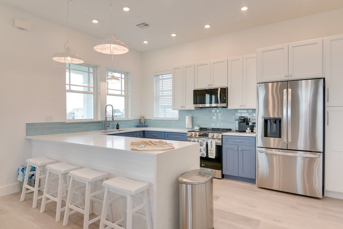 NOUVELLE construction en bord de mer ! Véritable perle rare :🦄 EMPLACEMENT et LUXE sur le SABLE, et à quelques pas du meilleur restaurant de Surfside (SEAHORSE) ! Profitez de hamacs et de jeux sous la maison. Barbecue au charbon de bois. Montez les marches pour accéder à une magnifique terrasse ombragée avec vue sur San Luis Pass jusqu'à la jetée ! Vue dégagée à plus de 180 degrés ! Chambres donnant sur la terrasse ensoleillée et l'observation des étoiles avec foyer 🔥 YouTube Beachfront Luxe pour la vidéo. Des frais de ménage de 125 $ et 75 $ pour 2 animaux de compagnie seront indiqués dans le prix total proposé.