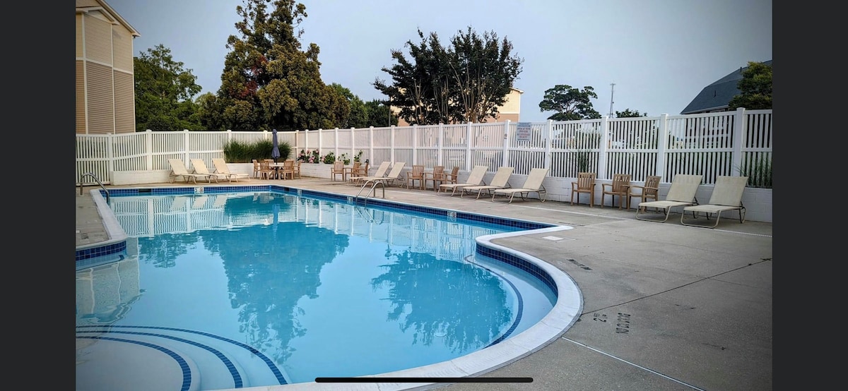 Cet appartement au premier étage est idéalement situé dans une communauté familiale avec tout ce dont vous avez besoin à distance de marche, y compris plusieurs restaurants et une épicerie. Un court trajet facile de 3 miles en voiture jusqu'à Lewes Beach et la charmante ville de Lewes en font un emplacement idéal. Les équipements comprennent l'accès à deux piscines, des courts de tennis, des courts de pickleball et une aire de jeux pour enfants. Le sentier cyclable/piétonnier de Georgetown Lewes, qui relie la ville de Lewes, est littéralement à quelques pas de notre porte d'entrée.