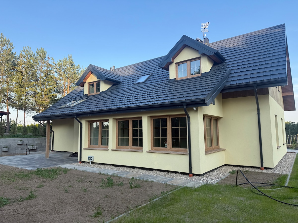 À louer, je propose une maison ENTIÈRE et charmante (175 m2) avec un jardin (1 200 m2) située dans le village de BRYZGIEL, entourée par la beauté de la nature. Situé sur les rives du lac WIGRY, ce petit village est l'endroit idéal pour ceux qui recherchent la paix et la détente loin de l'agitation de la ville. Le logement est spacieux et confortable : * 5 chambres pouvant accueillir 9 personnes * cuisine * salle à manger * salon avec foyer avec sortie sur la terrasse * 2 salles de bain * garage (-1) * salle de jeux (-1) (baby-foot, fléchettes, table de jeu de cartes)