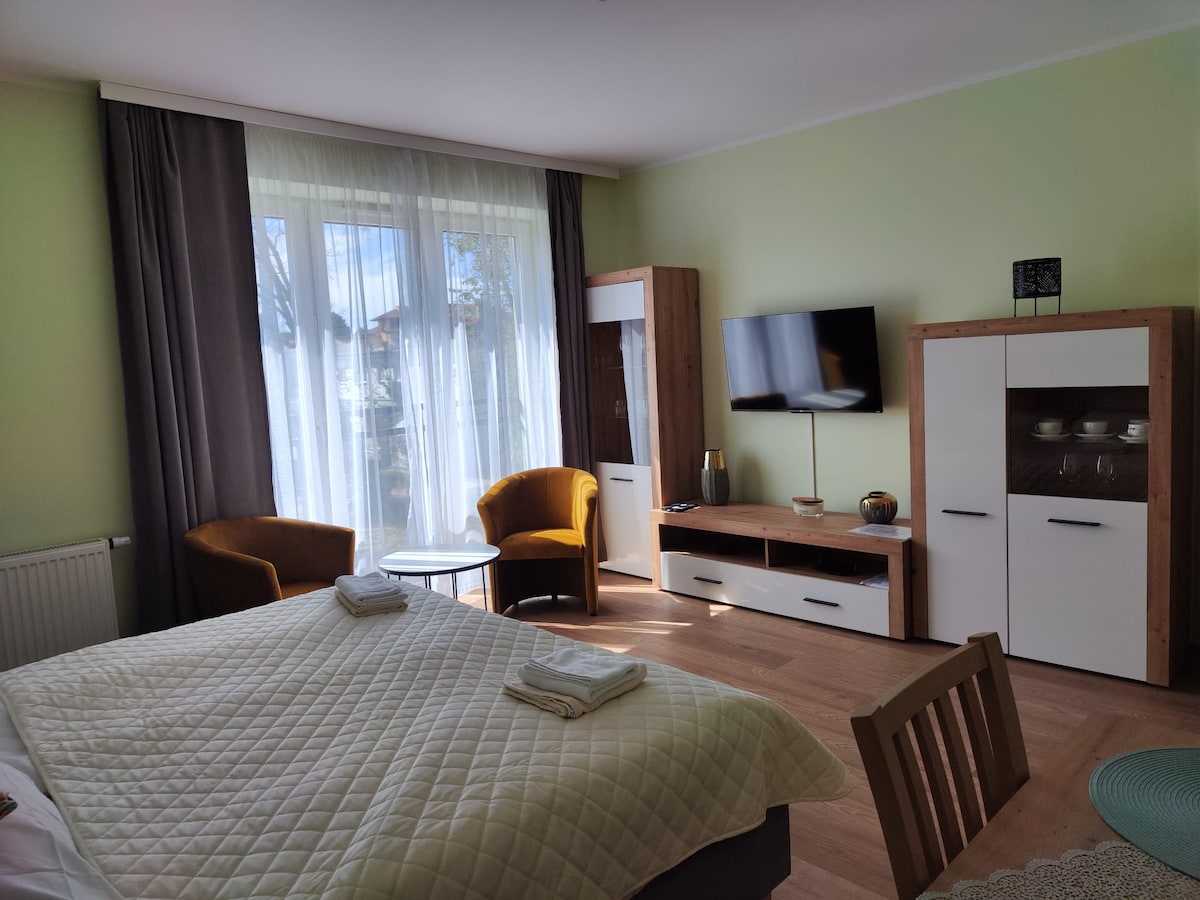 Nous proposons l'Appartement n° 1 en exclusivité avec une surface habitable de 58 m2 en plein centre. Appartement de deux pièces entièrement équipé au premier étage. Dans la cuisine, vous trouverez, entre autres, un four, un micro-ondes, une plaque à induction, un lave-vaisselle, une machine à café à capsules. Lieu destiné à un maximum de 5 personnes. Un point de départ idéal pour les familles, les jeunes et les voyages d'affaires. À proximité, vous trouverez des magasins, des écoles, une université, la mairie, des places et des parcs. Places de parking gratuites. Nous vous invitons :)