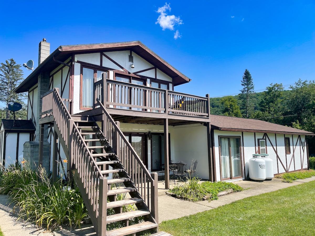 Escape to this spacious retreat perfect for the whole family, just minutes away from Hunt Hollow Ski Resort. Whether you're into exploring local wineries, breweries, or restaurants, or prefer outdoor adventures like boating, fishing, or hiking, this place has it all. Alternatively, simply unwind on the decks and soak in the peaceful scenery. Your home away from home awaits! Relax with the whole family at this peaceful place to stay.