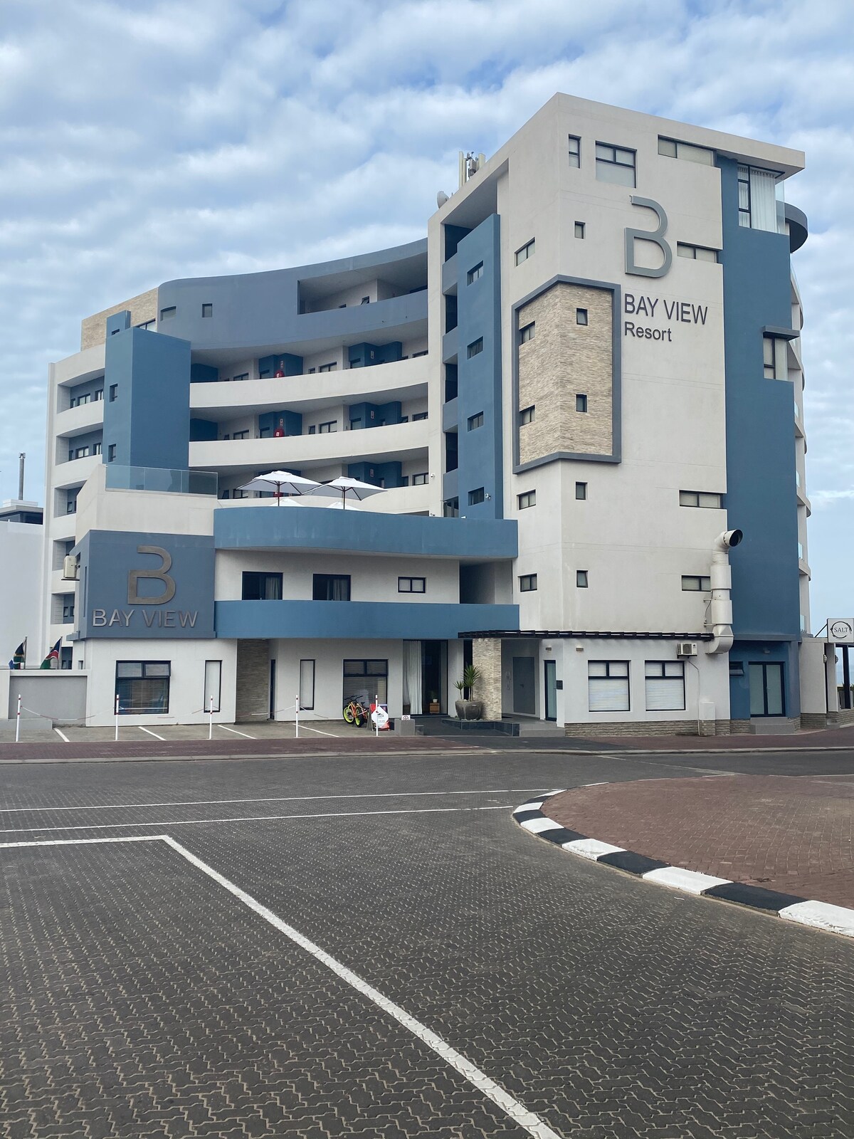 L'un des appartements de luxe indépendants du complexe Bay View Resorts. L'appartement privé surplombe les dunes de l'océan Atlantique et de Namib. Il y a un restaurant, un spa et un bar aérien dans l'immeuble.