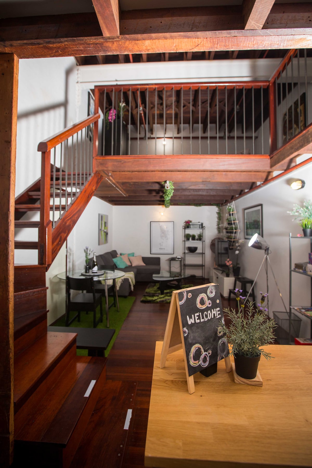The perfect Fremantle mini-break starts here. Stay in our beautifully designed, light filled loft located in the beating heart of Fremantle's historic West End district. Just a moments walk from the both the 'Cappuccino strip', and Fremantle's High Street, yet you will feel a world away in this spacious, leafy, open plan apartment. From the generous ground floor entry, a romantic spiral staircase will lead you to two beautifully decorated floors, with a street facing balcony.