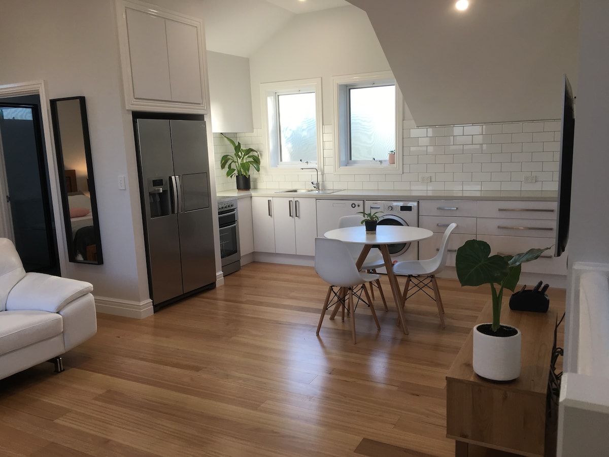 Fully self-contained, this modern and clean private accomodation is independent to a main home on a large block. Seperate access from the laneway, just minutes walk from the beach, train station and host of shops & cafes. Won't disappoint. Upto 3 guests (including any infants) permitted. Either a fold-a-bed or port-a-cot (including linen) will be provided for any additional guests (additional $15/night per additional bed)
