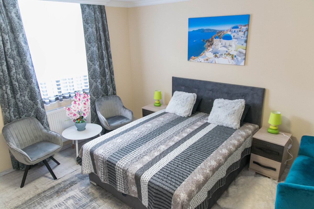 Au plaisir de vous accueillir dans notre appartement du centre-ville ! L'appartement est situé au centre-ville, mais dans une rue calme, avec un balcon, au 1er étage, appartement lumineux, où des serviettes fraîches et du café vous attendent toujours. Nous pensons que la qualité contribue à l'expérience de voyage. Venez chez nous, nous vous attendons avec amour !