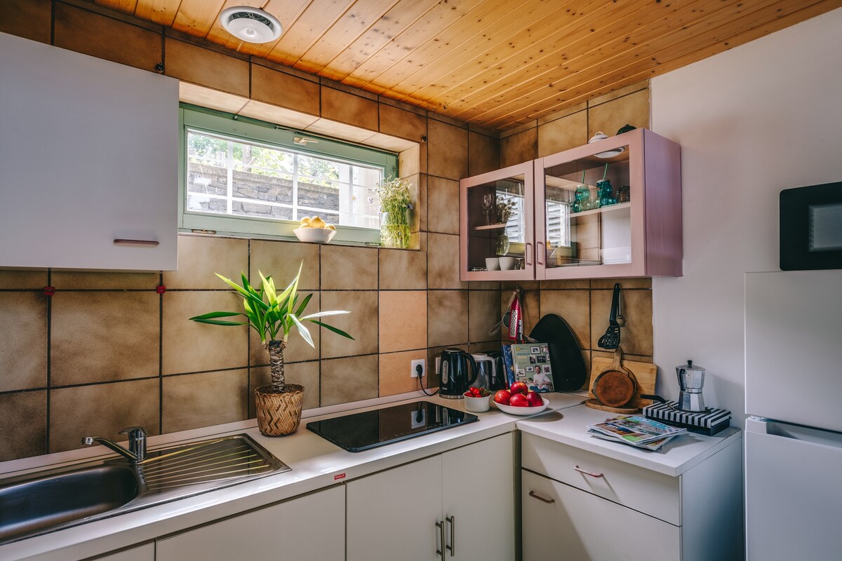 Une tiny house au-dessus d'une ancienne cave au pied de la colline de Szent Gyorgy dans la région viticole de Badacsony. Il a été récemment rénové de manière rustique mais moderne – un grand lit double, une salle de bain spacieuse, une cuisine bien équipée, un immense patio et la climatisation sont là pour votre confort. Le soir, admirez le coucher de soleil qui peint d'or les montagnes de la vallée de Tapolca. Le lac Balaton est à 10 minutes en voiture et il y a beaucoup d'options à proximité pour des excursions et d'autres activités.