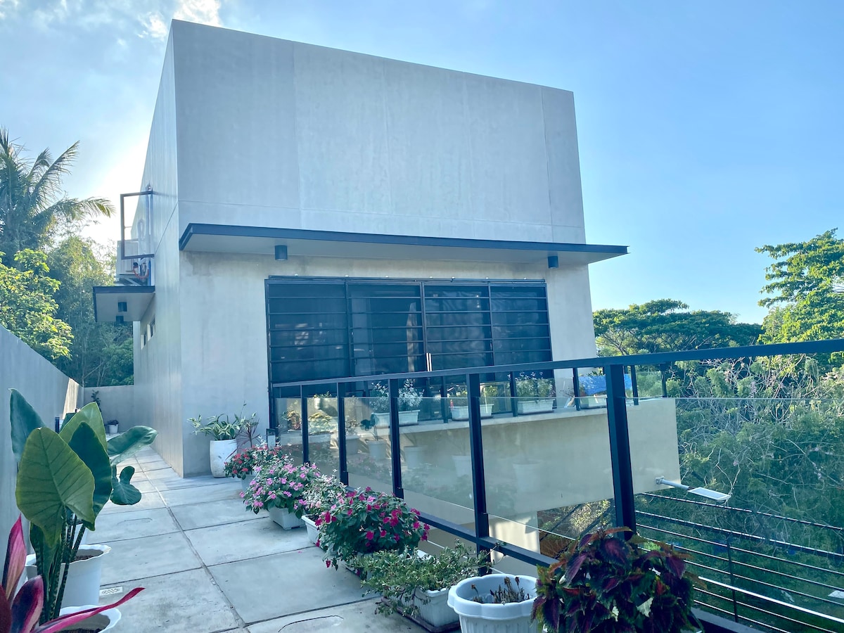 Un loft bien éclairé situé dans un loft fermé le long de l'autoroute Tagaytay-Nasugbu. Le quartier est très calme et sécurisé. Idéal pour la marche et le vélo. L'eau ne serait pas un problème car elle a sa propre citerne d'eau et sa propre pompe. La maison est presque complète pour avoir l'essentiel dont vous pourriez avoir besoin. Un parking couvert pour les petites voitures ou les motos est également disponible. Remarque : escaliers raides pour accéder au loft des voyageurs.