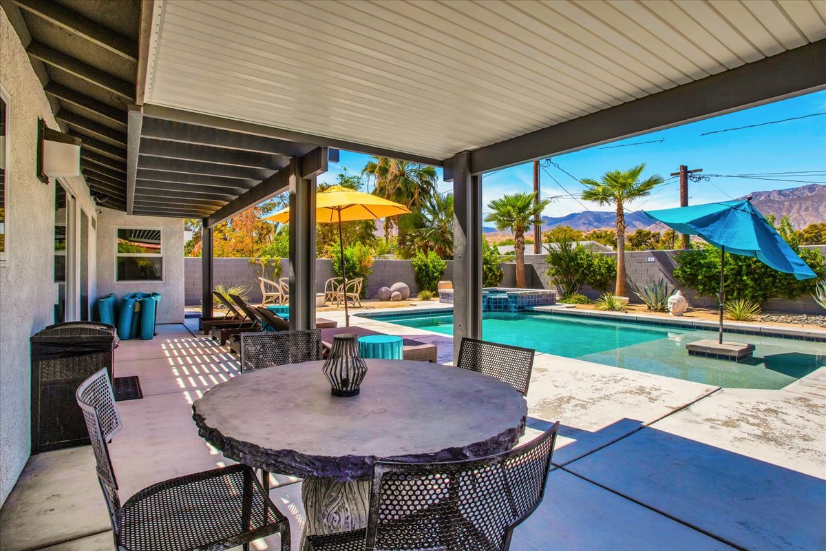 Une retraite du milieu du siècle faite pour les journées dans le désert et les nuits étoilées. Détendez-vous sous les brumisateurs, allumez la cuisine extérieure personnalisée ou détendez-vous dans la piscine moderne de la cour avant. À l'intérieur, le charme vintage rencontre le confort design avec des lits moelleux, des téléviseurs de 65", des œuvres d'art audacieuses inspirées de Palm Springs et une cuisine entièrement équipée. La cour privée, où les animaux de compagnie sont les bienvenus, est parfaite pour les jeux, l'observation des étoiles ou les sorties à l'heure dorée. Élégant, central et conçu pour que les conversations soient la seule priorité de la journée.
