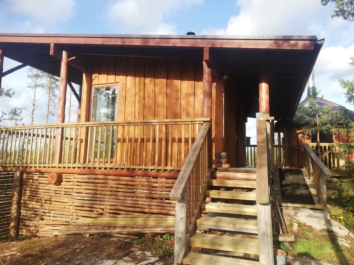 La maison de la falaise est construite à la main à partir de bois provenant des environs. La cabane est une cabane chaleureuse équipée d'équipements sur un rocher au milieu de la nature et des animaux de la forêt. La terrasse donne sur environ 4 km du lac en direction du coucher du soleil. Sauna paysager séparé et cabane barbecue vitrée sur la terrasse. Le chalet est parfait pour un couple et très bien pour une petite famille. Grande terrasse autour de la maison. Une partie de la terrasse est vitrée. Votre propre eau de puits est potable.