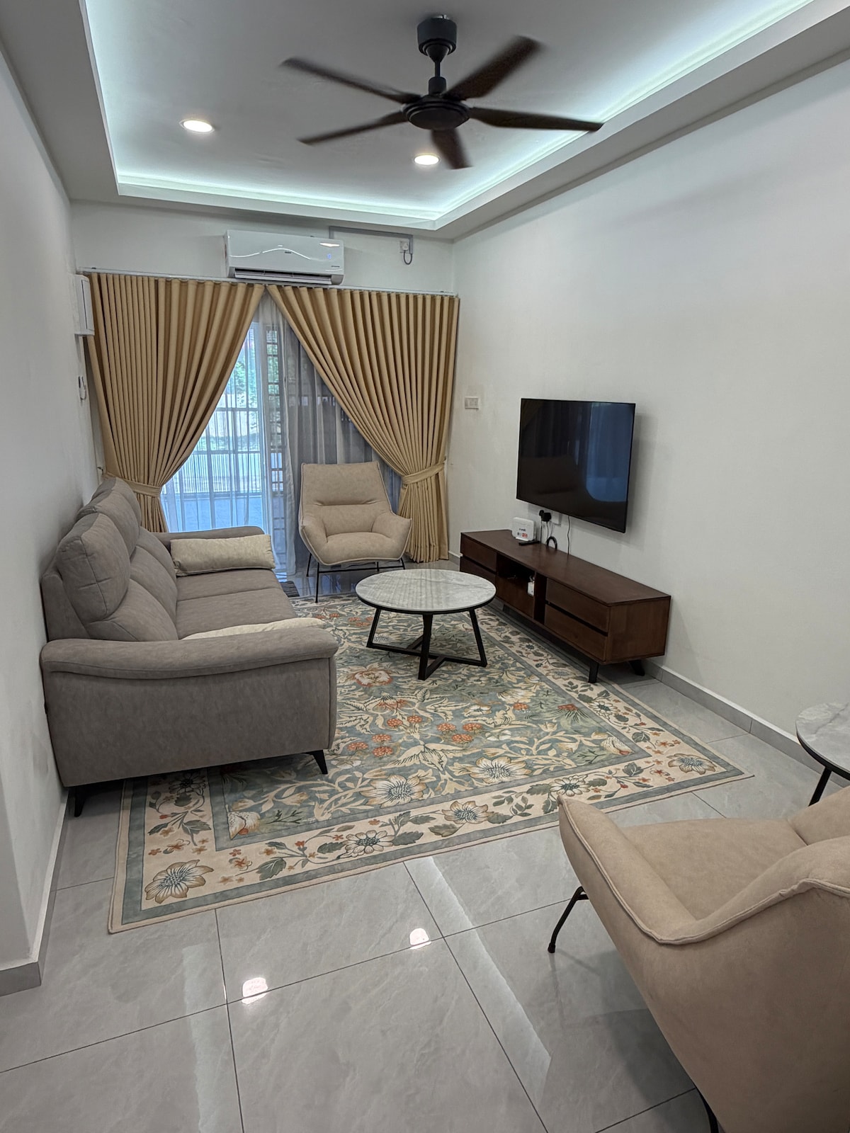 Appartement super spacieux, confortable et douillet, situé dans une zone stratégique. À moins de 5 minutes de la ville. Depuis le balcon, vous pourrez profiter de la vue verdoyante sur Taiping et des sons de la cascade juste à côté de la copropriété. Il convient aux familles qui veulent emmener leurs enfants en vacances car le zoo de Taiping et le Lake Garden se trouvent à moins de 500 m de la maison. Vous pouvez profiter de l'air frais le matin et de la vue sur le coucher du soleil le soir, car la maison est située sur une colline.