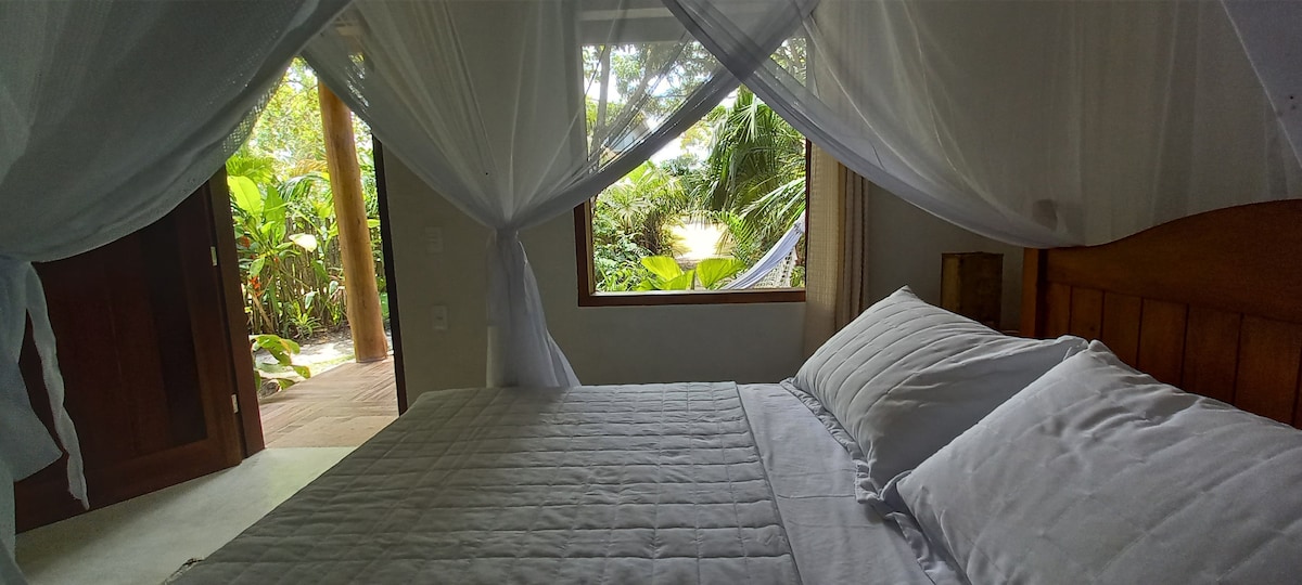 C'est un espace calme et plein de style à 200 mètres de la plage, au milieu de la végétation indigène ! Nous sommes LGBTQIAP+ friendly et parce que nous sommes loin du centre de la communauté, nous profitons du silence et de la tranquillité, mais à cinq minutes de l'agitation ! La suite avec vue sur les arbres est une garantie de repos. La cuisine avec plafond en piaçava est belle et est préparée avec le nécessaire. La salle de bain dispose d'espaces réservés qui garantissent votre intimité. Détendez-vous dans cet espace ! Vous allez adorer !