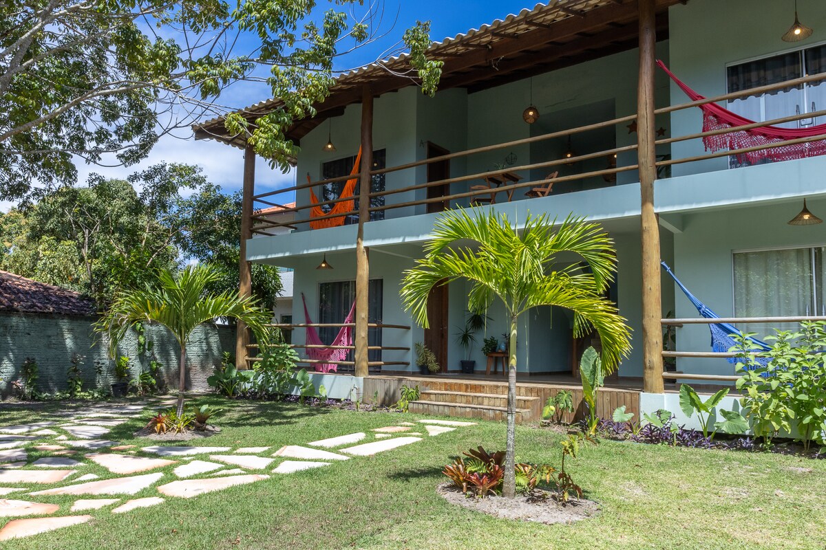 Profitez de cet espace intime et singulier ! Situé sur une alameda boisée et calme, en plus d'avoir une forêt préservée à côté ; nous sommes à seulement une minute à pied du sable de la plage de Taipu de Fora et, « collé » aux piscines naturelles - l'une des cartes postales les plus exubérantes de la péninsule de Maraú.