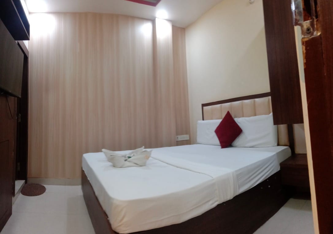 Située à seulement ½km du Taj Mahal, cette chambre dispose d'un lit king size ou de deux lits simples, avec un lit supplémentaire ajouté, parfait pour un maximum de 3 personnes. Notre service professionnel et notre confort haut de gamme vous séduiront dès que vous franchirez nos portes. Notre piscine sur le toit offre une vue imprenable sur le Taj. L'hôtel dispose d'un ascenseur et de deux restaurants sur place. En entrant dans votre chambre, vous serez accueillis par un cadre luxueux, avec une décoration élégante et des équipements pratiques. Bienvenue !