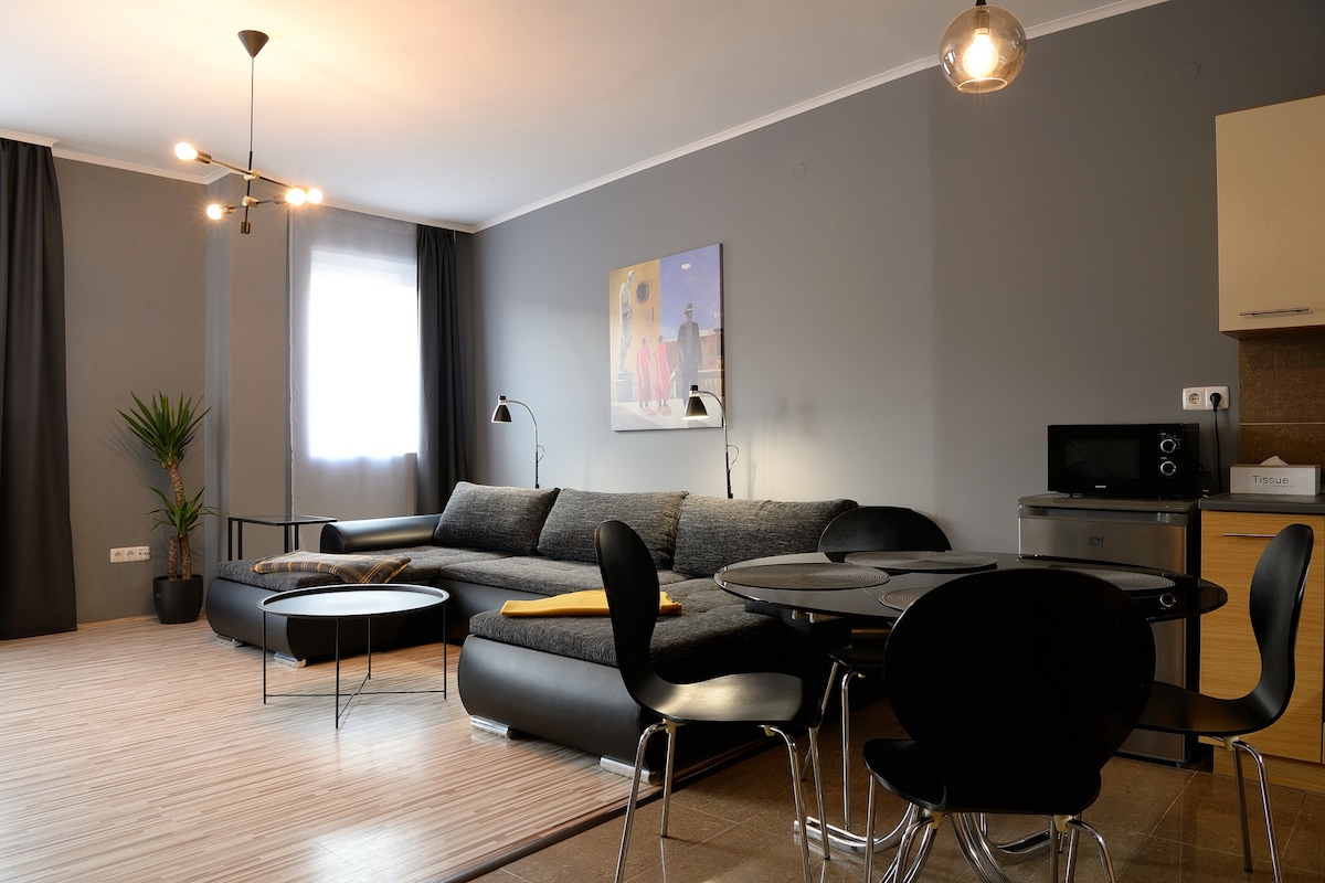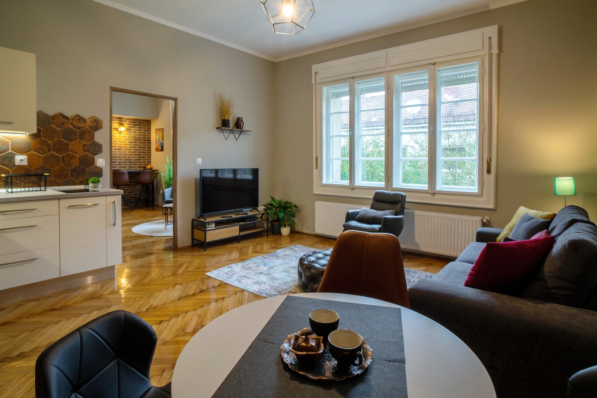 L'appartement est situé dans une rue calme du centre-ville, idéalement situé pour accéder facilement à tout. Il est décoré avec goût pour créer une atmosphère chaleureuse et refléter l'atmosphère des maisons du centre-ville d'il y a 100 ans. Le Wifi et la climatisation sont gratuits, la cuisine est bien équipée. Les matelas des chambres sont confortables, des draps frais et des oreillers moelleux assurent le confort. Bien que le propriétaire soit sympathique, vous pouvez utiliser le service sans le rencontrer si vous le souhaitez.