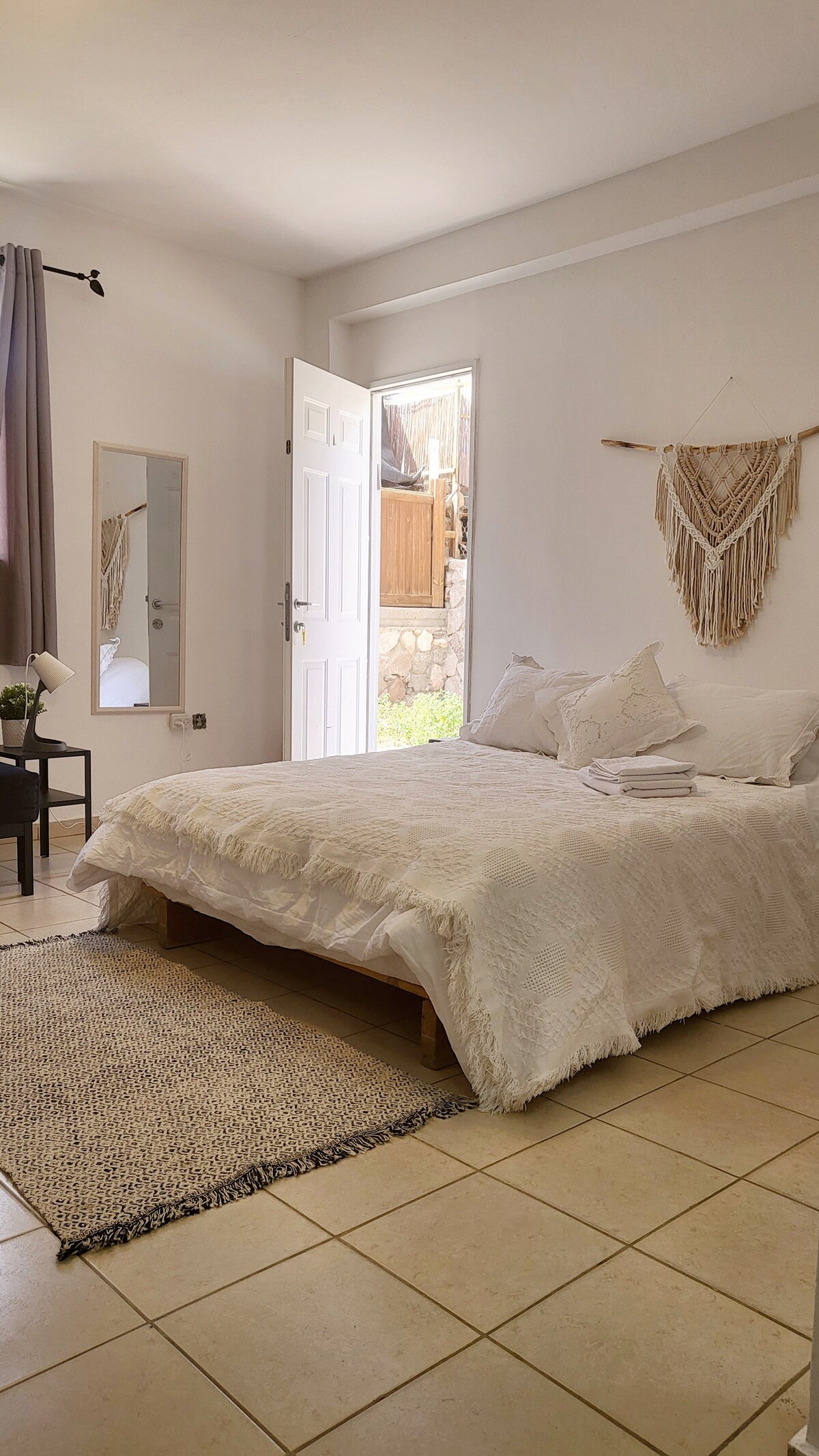 Profitez à Eilat, d'un quartier calme non loin de la plage et de la ville, à environ 10 minutes à pied ou 2 minutes en voiture. Il convient à un couple, un couple + enfant ou 3 adultes. Le logement dispose d'un lit double et d'un lit simple (si nécessaire), d'une kitchenette équipée, d'une télévision et du wifi. Il dispose également d'une cour privée avec un coin salon. L'appartement se trouve à quelques minutes à pied de l'épicerie du quartier et de la gare routière.