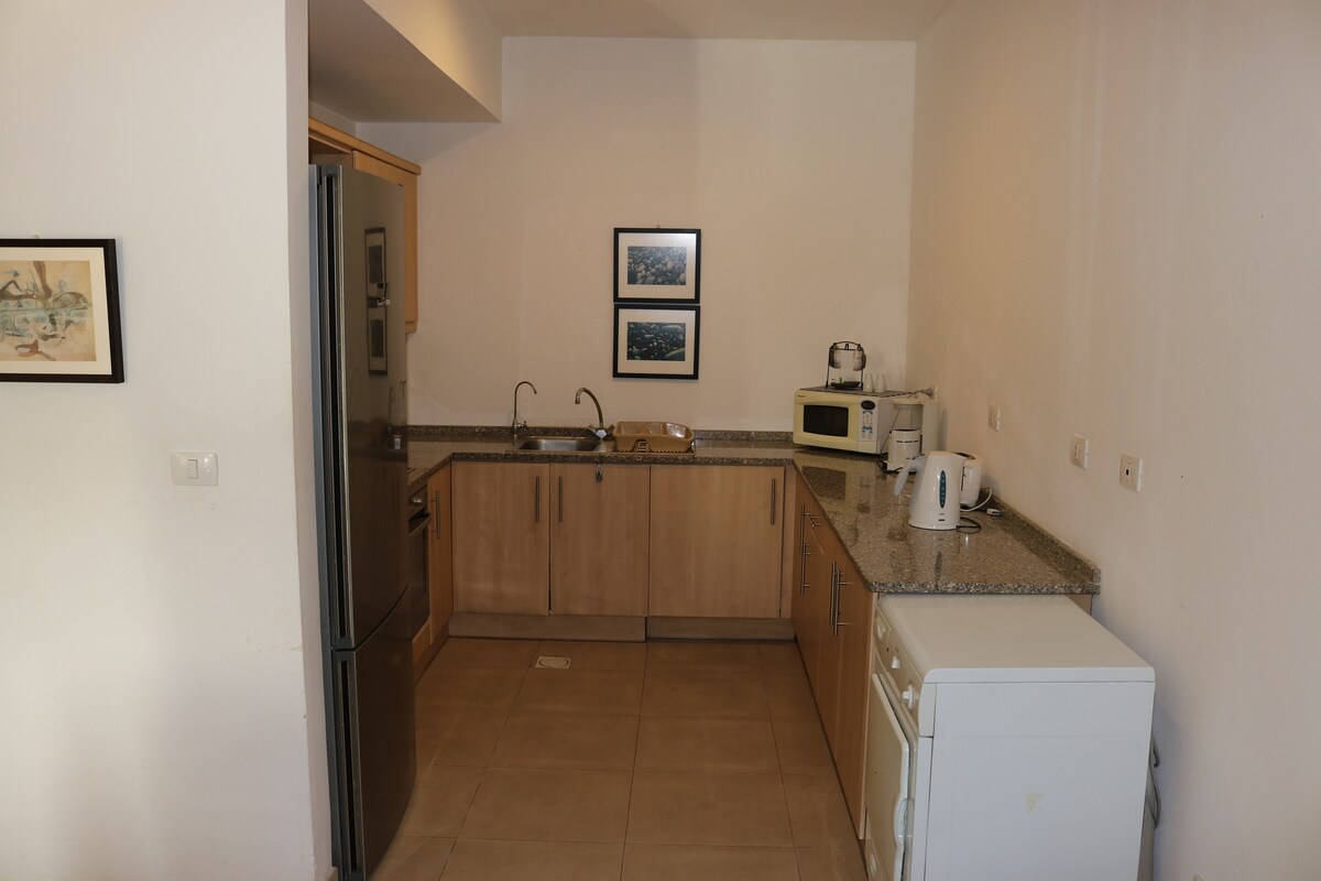 Relax with the family at this peaceful place to stay. A cozy two and a half bedroom apartment located in TalaBay Resort in Aqaba Jordan. Ground Floor direct access to the pool. Gym and other activities are steps away. It has a large terrace, BBQ grill , fully furnished kitchen. The Red Sea Beach is steps away too. The Resort offers private sandy beaches. Dining , Shopping & Sea sports including scuba diving, snorkeling, swimming, parasailing, cruise sunset dinners , yachting.