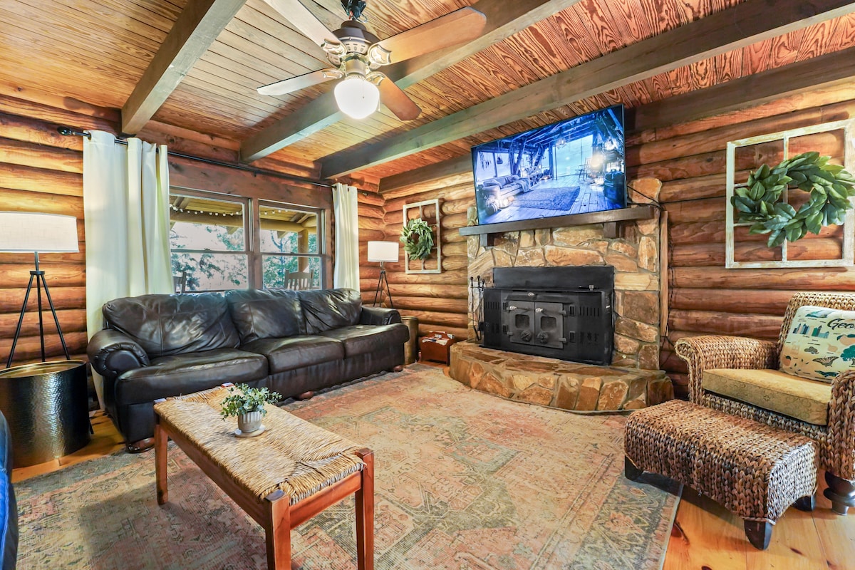 Évadez-vous à la campagne et détendez-vous dans notre confortable chalet sur 50 acres paisibles avec une belle vue sur un étang privé. Détendez-vous sur le porche dans un rocking chair ou une balançoire, plongez dans la piscine (ouverte de juin à septembre) ou pêchez la daurade et le bar juste derrière. Que vous cherchiez à ralentir, à explorer le plein air ou simplement à vous détendre, c'est l'endroit idéal pour votre escapade.