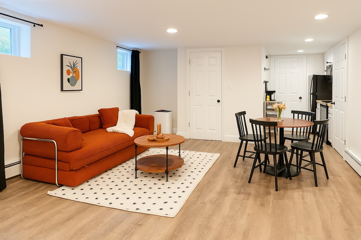 Studio design moderne à 1 pâté de maisons de Main St, à 8 min à pied de Metro-North (35 min de NYC). Entrée privée, Wi-Fi rapide, cuisine équipée, lit Queen Size + canapé-lit King Size. Petite cour avant pour un bol d'air frais. Promenez-vous jusqu'aux restaurants, cafés et parcs de la rivière Hudson. Idéal pour les couples, les voyageurs en solo et les télétravailleurs. Explorez la charmante Tarrytown, Sleepy Hollow, les sentiers Rockefeller et la vallée de l'Hudson. Une base élégante et confortable pour votre prochaine escapade !
