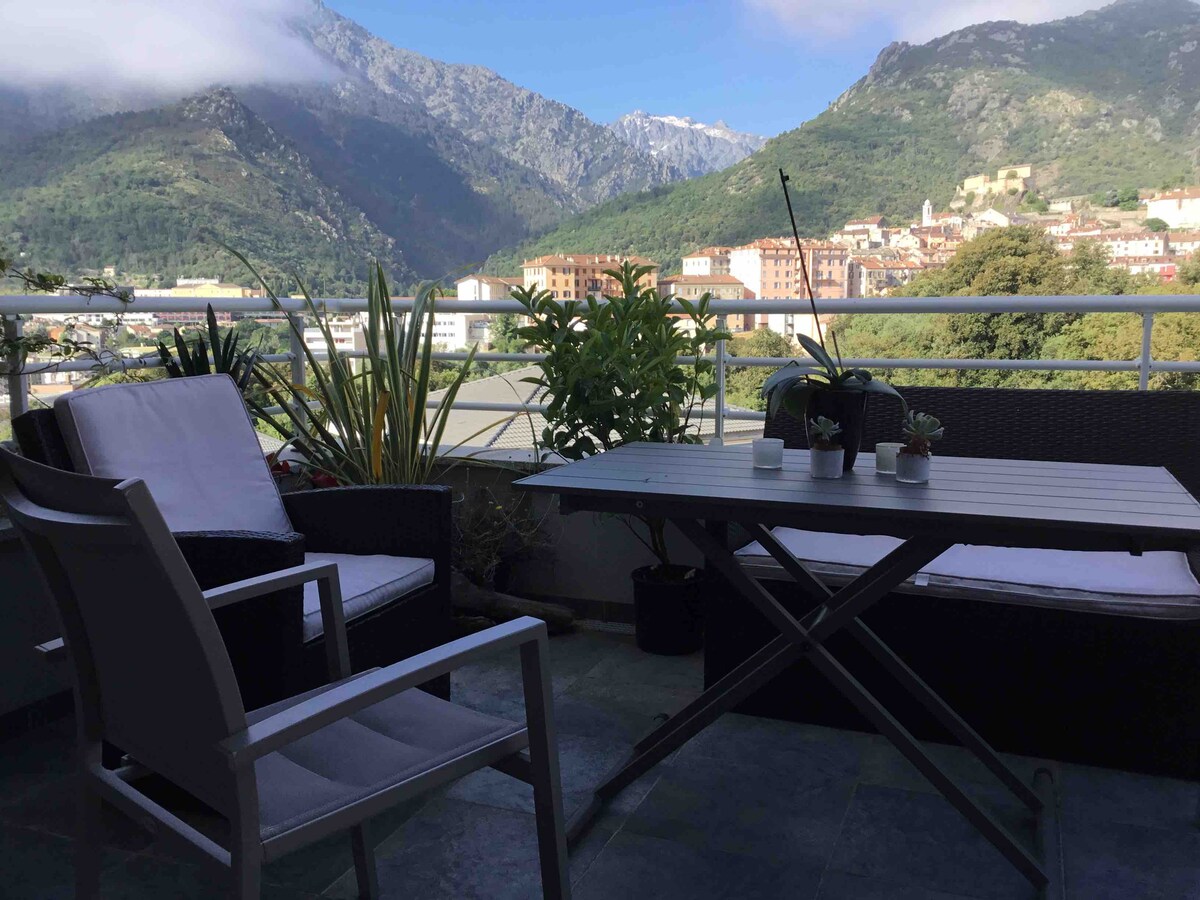 Ce très bel appartement de luxe,lumineux et moderne,à la vue imprenable sur la citadelle de Corté et ses montagnes,s'inscrira dans vos magnifiques souvenirs de Corse.À 5 mn à pied du cœur de la ville et de la gare,il est équipé des meilleures commodités. Vous pourrez déjeûner sur sa belle terrasse ensoleillée,dîner aux chandelles sous le ciel étoilé de l'été et vous relaxer sur des transats dans un cadre majestueux.L'accueil y est toujours délicat.Une place de parking vous y est attribuée.