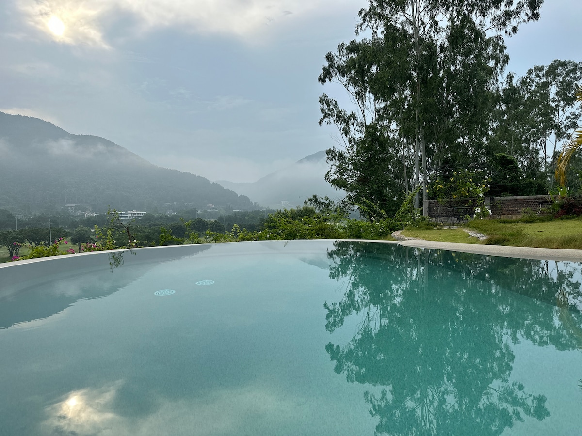 Détendez-vous en famille dans ce logement paisible. Vue sur toute la vallée et le château de Tam Dao Piscine à débordement gratuite Détente et grillades en plein air Chambre avec salle de bain attenante, installations Parking gratuit devant chez vous Moto à louer, haut-parleur à tirer