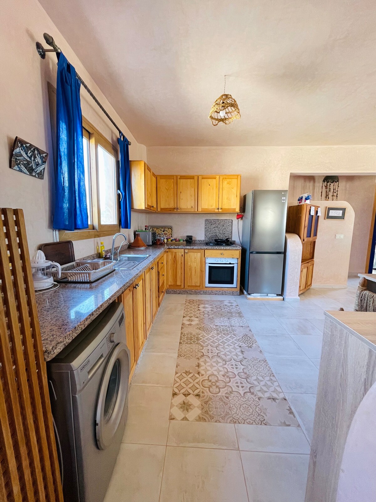 Appartement moderne de 2 chambres à Sidi Kaouki, à quelques pas de la plage de surf. Salon lumineux, cuisine entièrement équipée et ambiance chaleureuse idéale pour les familles, les couples ou les amis. Profitez de la brise marine, surfez sur les vagues ou détendez-vous dans un village calme en bord de mer, tout en étant proche de la culture dynamique d'Essaouira. Le mélange parfait de charme marocain et de confort moderne pour un séjour inoubliable