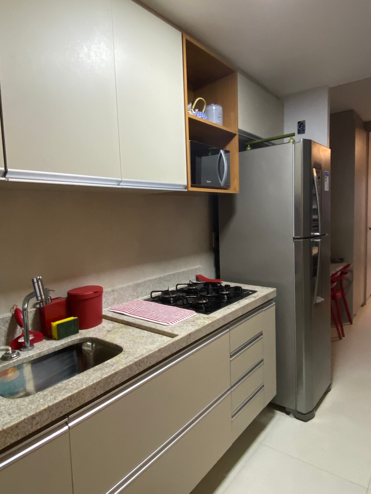 AMURA FLAT - Bord de mer de Praia dos Carneiros. Élue à plusieurs reprises comme la meilleure plage du Brésil. Excellent tronçon avec des eaux cristallines et chaudes situé à Tamandaré/PE. Nouveau développement. L'APPARTEMENT Appartement familial avec 01 lit Queen + 01 canapé-lit avec une capacité pour 04 personnes avec balcon gastronomique. Il dispose de : air, sèche-cheveux, grill pour barbecue, cooktop 02 bouches, mixeur, sandwicherie, cafetière, micro-ondes, couscous et, linge de maison. Il dispose d'une piscine, d'un terrain de football, d'un Beach Club / parc.