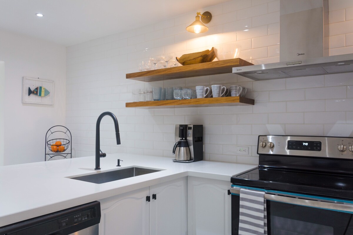 Condo fraîchement décoré de 2 chambres, 2,5 salles de bain avec Internet haut débit, de nombreuses prises CA/USB et un onduleur de 1 000 watts. Vous trouverez tout ce dont vous avez besoin pour passer un séjour confortable et agréable. Nous fournissons des chaises longues, des parasols et une glacière. Vous pourrez préparer à peu près n'importe quel repas dans la cuisine bien aménagée et, espérons-le, voir les singes hurleurs à l'extérieur de la fenêtre.