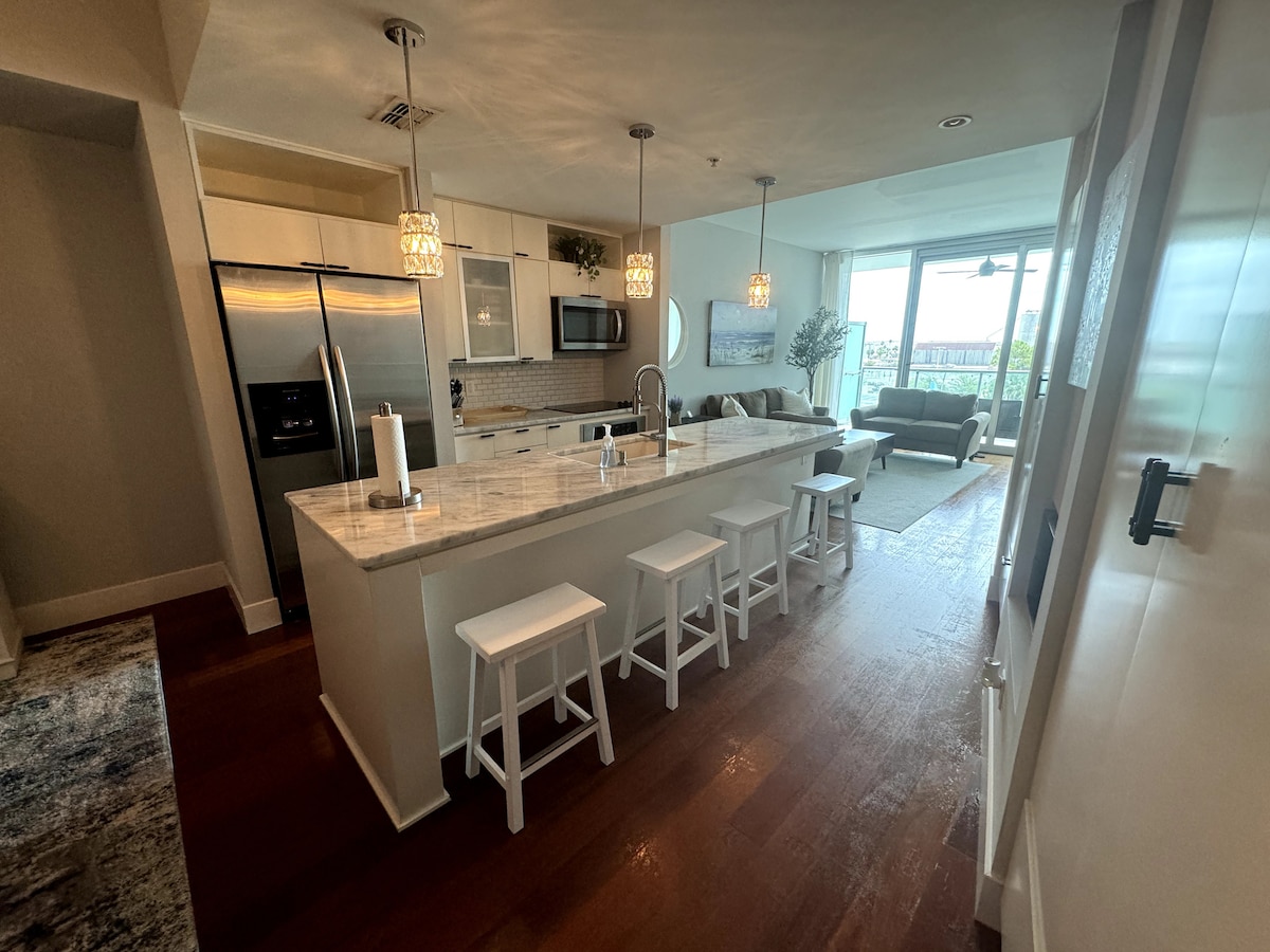 Réveillez-vous avec une vue calme sur le port dans cet appartement de 2 chambres au dernier étage, orienté à l'est, au cœur de Channelside. Conçue comme une retraite urbaine en bord de mer, cette maison de plus de 1200 pieds carrés allie confort moderne et atmosphère calme et élevée. Savourez un café au lever du soleil sur le balcon privé donnant sur le port d'Ybor, puis marchez jusqu'à l'Amalie Arena, Water Street, Sparkman Wharf ou le centre de congrès. Parfait pour les fans de Lightning, les passagers de croisière, les participants au centre de congrès et les voyageurs d'affaires à la recherche d'un séjour raffiné au centre-ville de Tampa.
